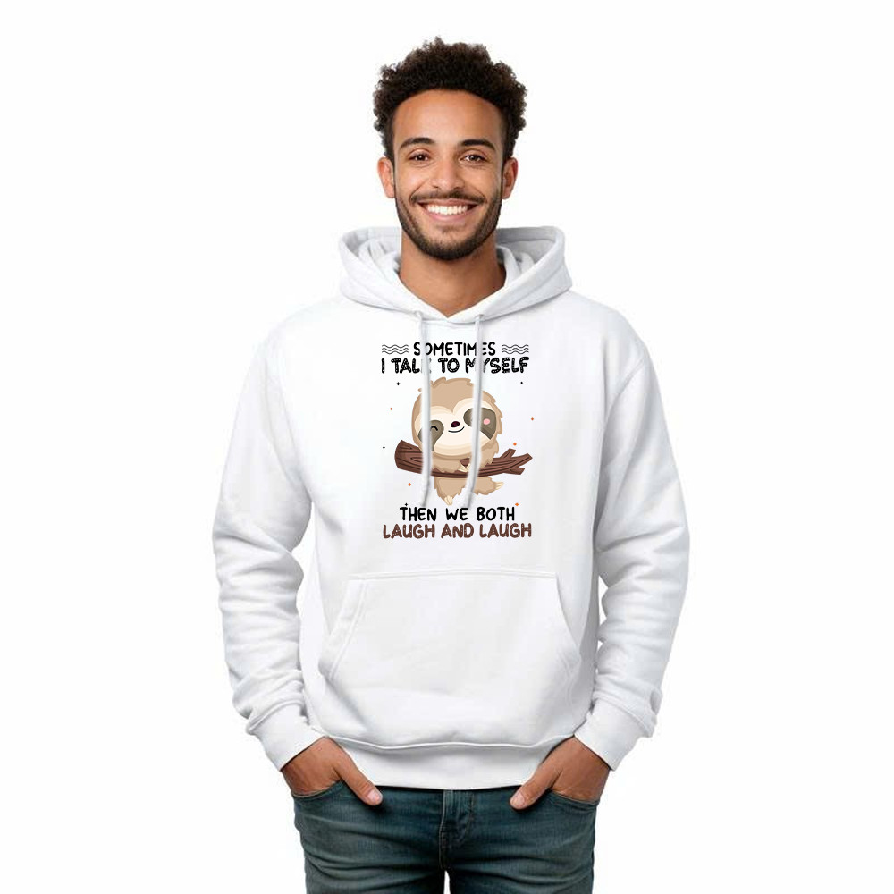 Sloth Sometimes I Talk To Myself Hoodie Cute Fun Sayings For Shirts Gift For Sloth Lovers. Unisex. Hoodie printed in USA. Exclusive products made by: Rivonaprint. 8 oz 50/50 cotton/poly. Air jet yarn creates a smooth, low-pill surface. Double needle stitching; Pouch pocket; Unisex sizing. Decoration type: Digital Print. All products are made to order…