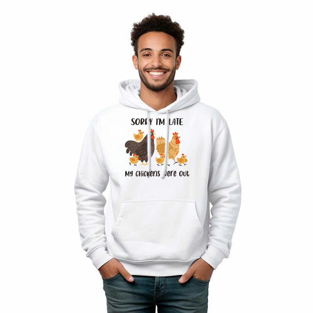 Sorry I’m Late My Chickens Were Out Hoodie Funny Sayings Shirt Gifts For Chicken Farmers. Unisex. Hoodie printed in USA. Exclusive products made by: Rivonaprint. 8 oz 50/50 cotton/poly. Air jet yarn creates a smooth, low-pill surface. Double needle stitching; Pouch pocket; Unisex sizing. Decoration type: Digital Print. All products are made to order and…