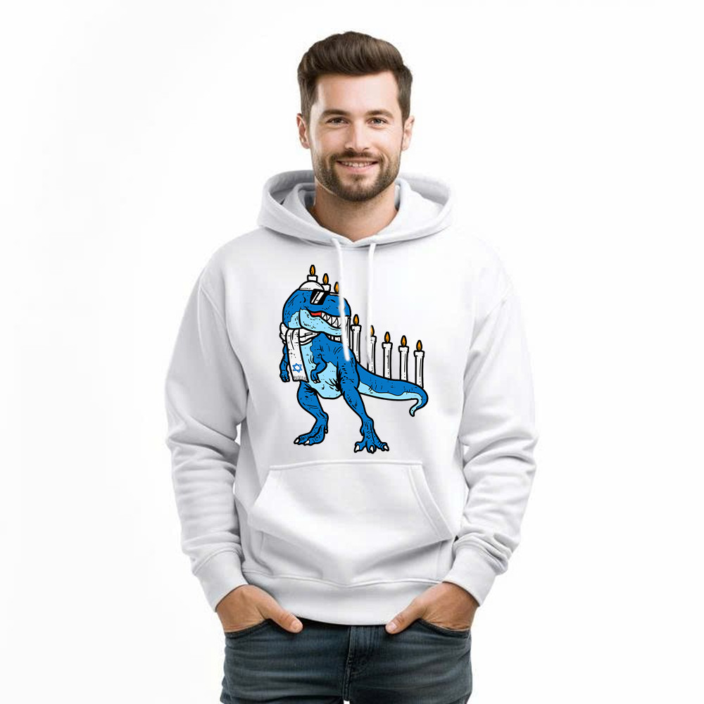 T-Rex Dinosaur Happy Hanukkah Jewish Hoodie Jewish Birthday Gifts For Boys. Unisex. Hoodie printed in USA. Exclusive products made by: Rivonaprint. 8 oz 50/50 cotton/poly. Air jet yarn creates a smooth, low-pill surface. Double needle stitching; Pouch pocket; Unisex sizing. Decoration type: Digital Print. All products are made to order and proudly printed to the…