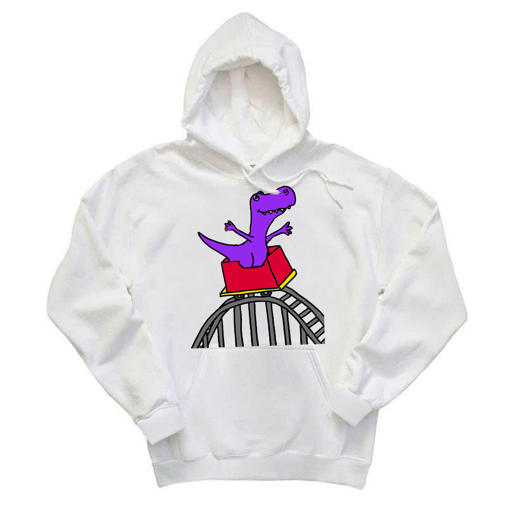 T-Rex Riding Roller Coaster Hoodie Funny Cute Graphic Tee Shirt Apparel Gifts For Him. Unisex. Hoodie printed in USA. Exclusive products made by: Rivonaprint. 8 oz 50/50 cotton/poly. Air jet yarn creates a smooth, low-pill surface. Double needle stitching; Pouch pocket; Unisex sizing. Decoration type: Digital Print. All products are made to order and proudly…