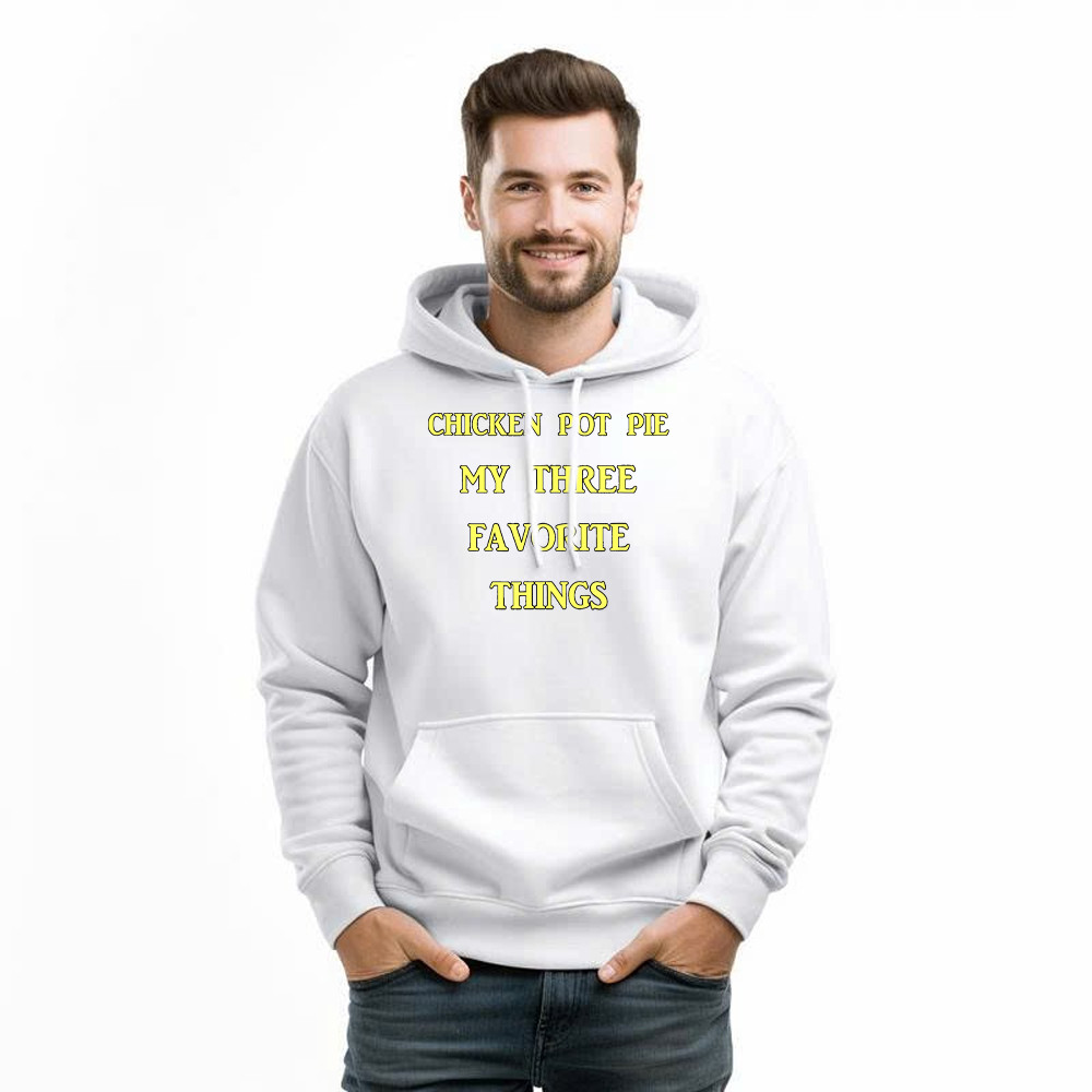 Chicken Pot Pie My Three Favorite Things Shirt Funny 420 Sarcastic Hoodie Thanksgiving Gifts. Unisex. Hoodie printed in USA. Exclusive products made by: Rivonaprint. 8 oz 50/50 cotton/poly. Air jet yarn creates a smooth, low-pill surface. Double needle stitching; Pouch pocket; Unisex sizing. Decoration type: Digital Print. All products are made to order and proudly…