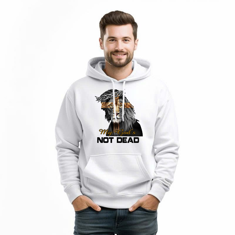 Lion Jesus My God’s Not Dead Hoodie Faith Mens Christian Clothing Gifts For Him. Unisex. Hoodie printed in USA. Exclusive products made by: Rivonaprint. 8 oz 50/50 cotton/poly. Air jet yarn creates a smooth, low-pill surface. Double needle stitching; Pouch pocket; Unisex sizing. Decoration type: Digital Print. All products are made to order and proudly…