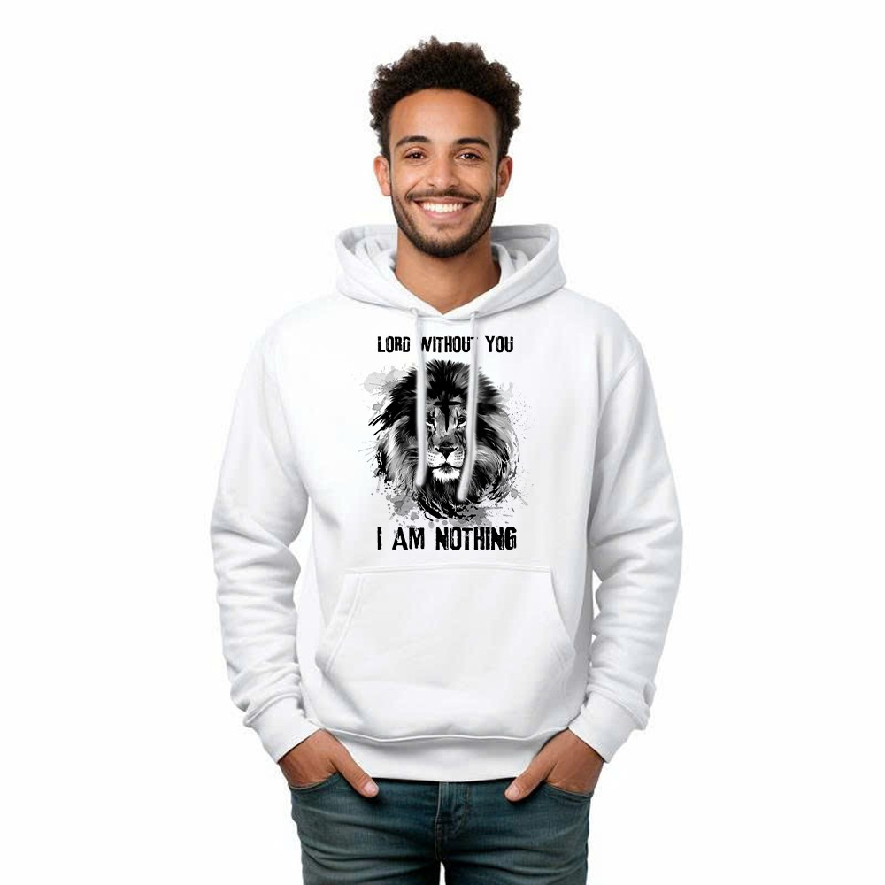 Lion Of Judah Lord Without You I Am Nothing Hoodie Mens Christian Shirt Apparel. Unisex. Hoodie printed in USA. Exclusive products made by: Rivonaprint. 8 oz 50/50 cotton/poly. Air jet yarn creates a smooth, low-pill surface. Double needle stitching; Pouch pocket; Unisex sizing. Decoration type: Digital Print. All products are made to order and proudly…