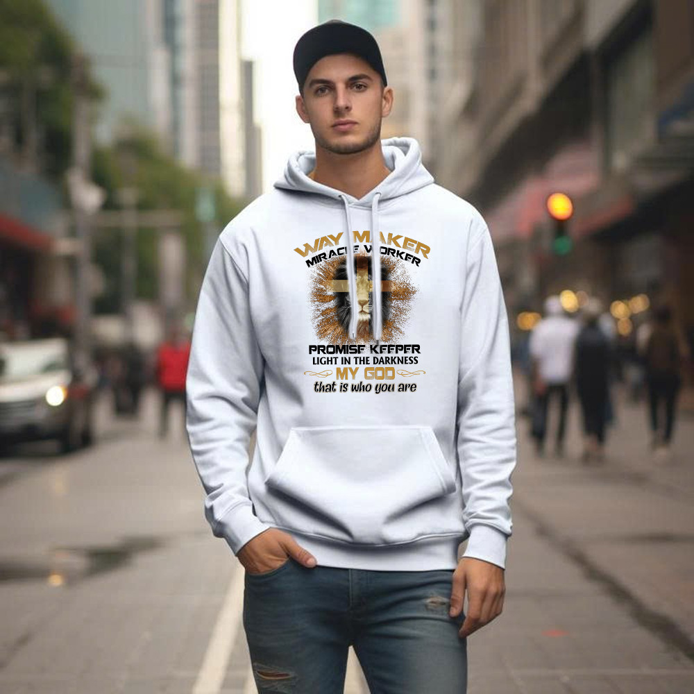 Lion Way Maker Miracle Worker Promise Keeper Hoodie Mens Christian Shirt Gifts For Men. Unisex. Hoodie printed in USA. Exclusive products made by: Rivonaprint. 8 oz 50/50 cotton/poly. Air jet yarn creates a smooth, low-pill surface. Double needle stitching; Pouch pocket; Unisex sizing. Decoration type: Digital Print. All products are made to order and proudly…