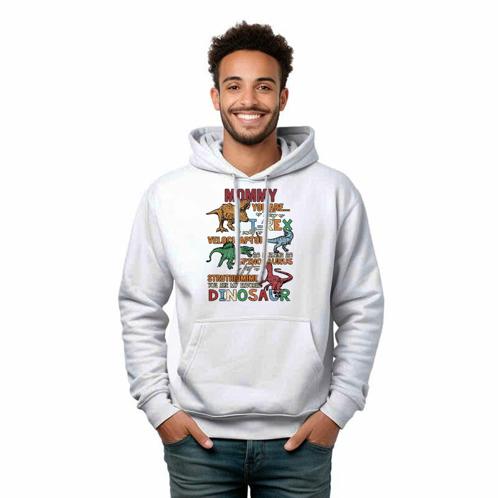 Mommy You Are my favorite Dinosaur Hoodie Vintage Mamasaurus Shirt For Son Gifts. Unisex. Hoodie printed in USA. Exclusive products made by: Rivonaprint. 8 oz 50/50 cotton/poly. Air jet yarn creates a smooth, low-pill surface. Double needle stitching; Pouch pocket; Unisex sizing. Decoration type: Digital Print. All products are made to order and proudly printed…