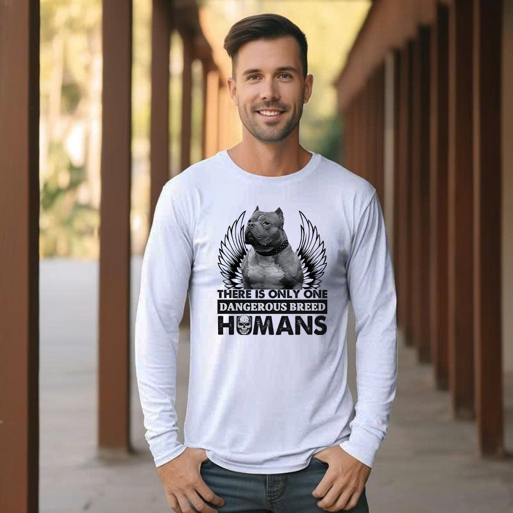 Pitbull There Is Only One Dangerous Breed Humans Shirt Funny Sarcastic Long Sleeve Shirt Dog Lovers Gift. Long Slevee Shirt product print in the USA. Exclusive products made by: Rivonaprint. Material: 100% cotton. Soft, moisture-wicking, breathable, and comfortable fabric. Double-stitched sleeves and hem. Relatively relaxed fit, suitable for both males and females. Ribbed cuffs to…