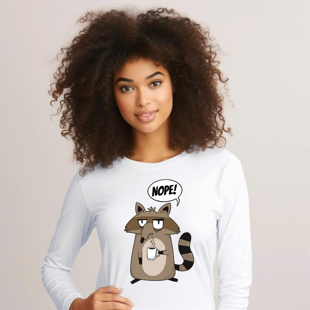 Racoon Morning Coffee Nope Long Sleeve Shirt Hilarious Funny Racoon Shirt Graphic Tee. Long Slevee Shirt product print in the USA. Exclusive products made by: Rivonaprint. Material: 100% cotton. Soft, moisture-wicking, breathable, and comfortable fabric. Double-stitched sleeves and hem. Relatively relaxed fit, suitable for both males and females. Ribbed cuffs to keep warmth. Digital printing…
