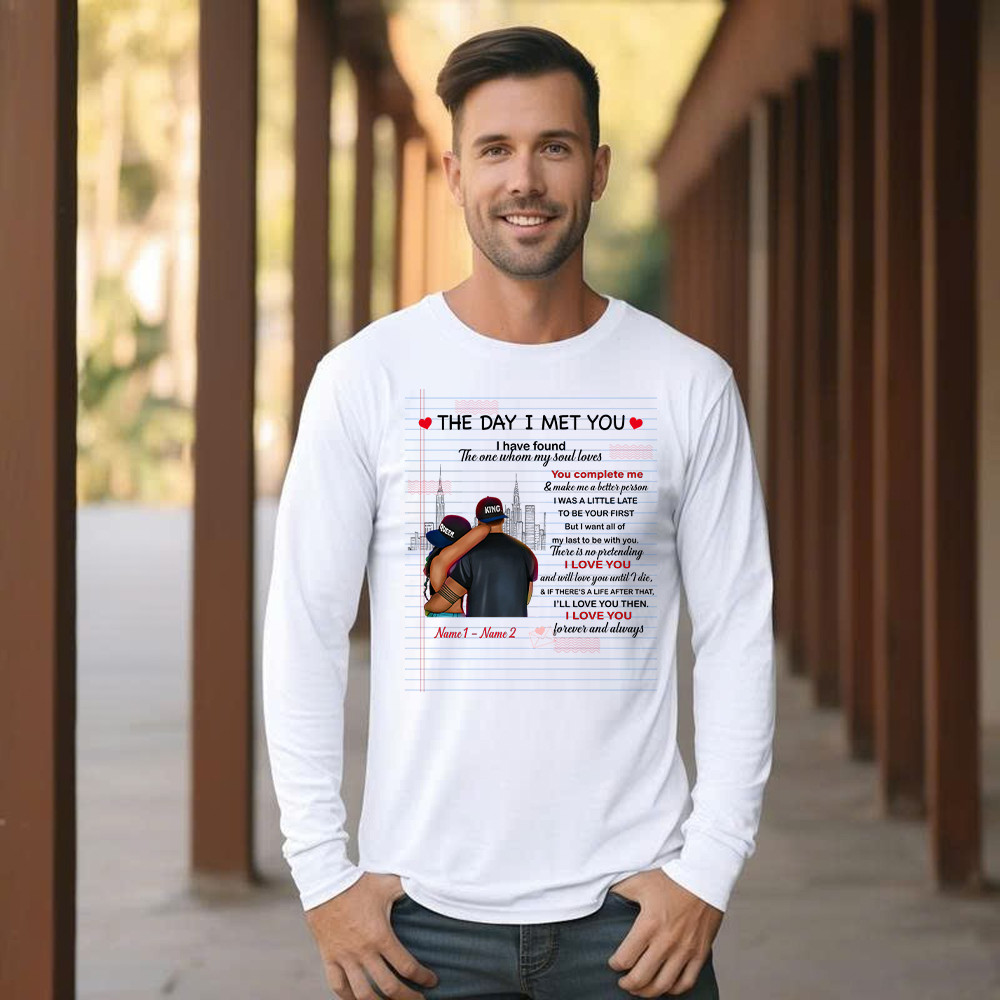The Day I Met You I Have Found The One Whom My Soul Loves Long Sleeve Shirt Matching Shirts For Couples. Long Slevee Shirt product print in the USA. Exclusive products made by: Rivonaprint. Material: 100% cotton. Soft, moisture-wicking, breathable, and comfortable fabric. Double-stitched sleeves and hem. Relatively relaxed fit, suitable for both males and…