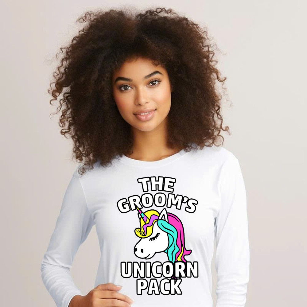 The Groom’s Unicorn Pack Long Sleeve Shirt Funny Groomsmen Shirts Gift For Friends. Long Slevee Shirt product print in the USA. Exclusive products made by: Rivonaprint. Material: 100% cotton. Soft, moisture-wicking, breathable, and comfortable fabric. Double-stitched sleeves and hem. Relatively relaxed fit, suitable for both males and females. Ribbed cuffs to keep warmth. Digital printing…