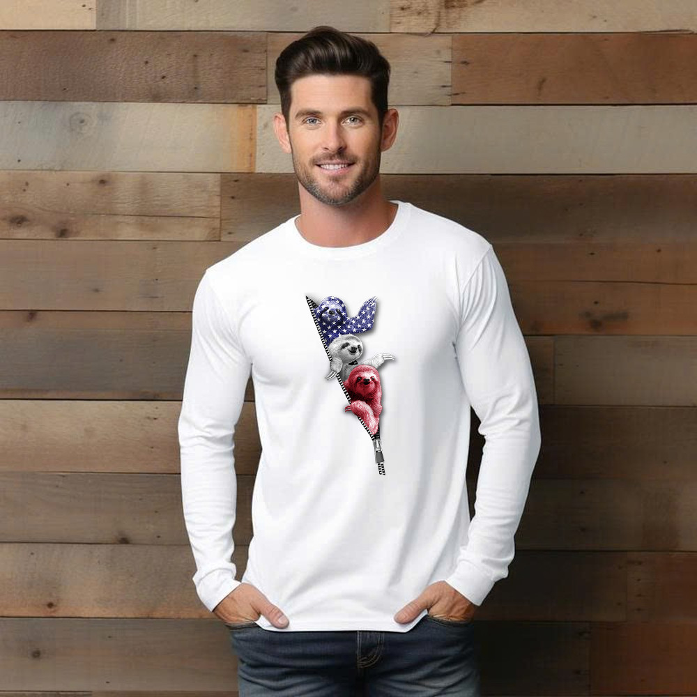 Three Sloths American Long Sleeve Shirt Patriotic Cute Sloths Tee Shirt 4Th Of July Gift For Siblings. Long Slevee Shirt product print in the USA. Exclusive products made by: Rivonaprint. Material: 100% cotton. Soft, moisture-wicking, breathable, and comfortable fabric. Double-stitched sleeves and hem. Relatively relaxed fit, suitable for both males and females. Ribbed cuffs to…