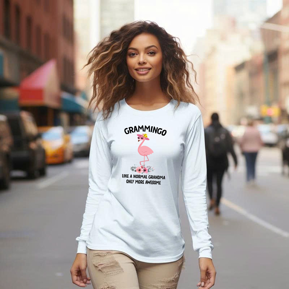 Grammingo Like Normal Grandma Only More Awesome Long Sleeve Shirt Flamingo Woman Fun Tees Gifts For Grandma. Long Slevee Shirt product print in the USA. Exclusive products made by: Rivonaprint. Material: 100% cotton. Soft, moisture-wicking, breathable, and comfortable fabric. Double-stitched sleeves and hem. Relatively relaxed fit, suitable for both males and females. Ribbed cuffs to…