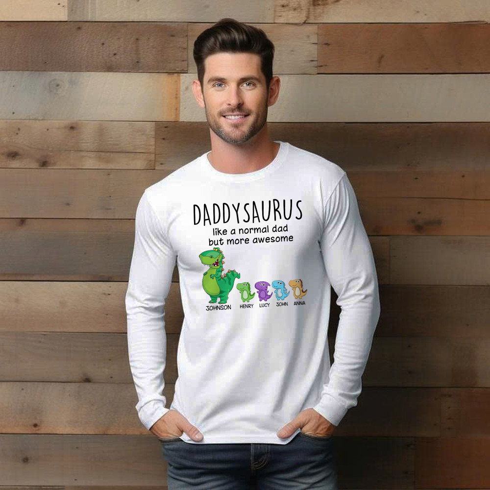 Grandpasaurus Like A Normal Dad But More Awesome Shirt Cute Dinosaurs Graphic Long Sleeve Shirt Daddy Gift. Long Slevee Shirt product print in the USA. Exclusive products made by: Rivonaprint. Material: 100% cotton. Soft, moisture-wicking, breathable, and comfortable fabric. Double-stitched sleeves and hem. Relatively relaxed fit, suitable for both males and females. Ribbed cuffs to…