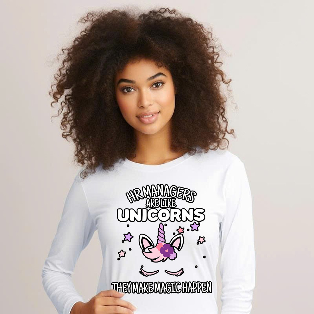 HR Managers Are Like Unicorns They Make Magic Happen Make Long Sleeve Shirt HR Funny Gifts. Long Slevee Shirt product print in the USA. Exclusive products made by: Rivonaprint. Material: 100% cotton. Soft, moisture-wicking, breathable, and comfortable fabric. Double-stitched sleeves and hem. Relatively relaxed fit, suitable for both males and females. Ribbed cuffs to keep…