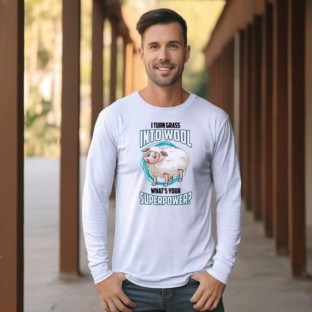 I Turn Grass Into Wool What s Your Superpower Shirt Sheep Farmer Cute Long Sleeve Shirt Gift For Dad. Long Slevee Shirt product print in the USA. Exclusive products made by: Rivonaprint. Material: 100% cotton. Soft, moisture-wicking, breathable, and comfortable fabric. Double-stitched sleeves and hem. Relatively relaxed fit, suitable for both males and females. Ribbed…