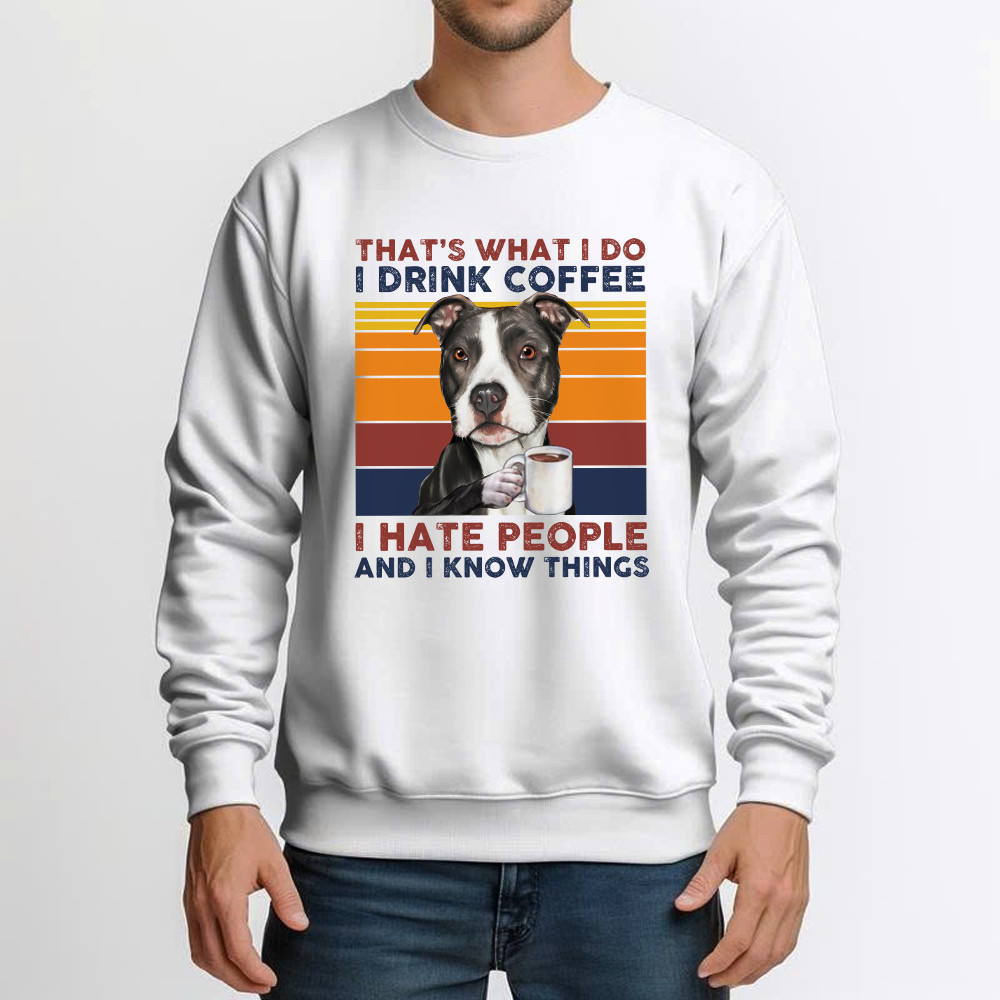 That’s What I Do I Drink Coffee I Hate People Shirt Funny Pitbull Sweatshirt Gift For Men. Sweatshirt product print in the USA. Exclusive products made by: Rivonaprint. 1×1 athletic rib cuffs and waistband with spandex; Double-needle stitching. 8 oz; 50% cotton/50% polyester. Decoration type: Digital Print. All products are made to order and proudly…