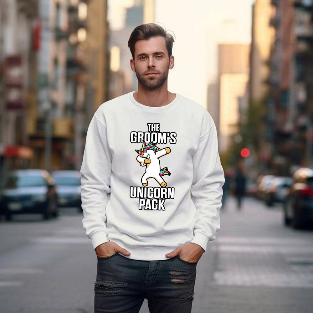 The Groom’s Unicorn Pack Sweatshirt Funny Groomsmen Shirts Gifts For Dude Friends. Sweatshirt product print in the USA. Exclusive products made by: Rivonaprint. 1×1 athletic rib cuffs and waistband with spandex; Double-needle stitching. 8 oz; 50% cotton/50% polyester. Decoration type: Digital Print. All products are made to order and proudly printed to the best standards…