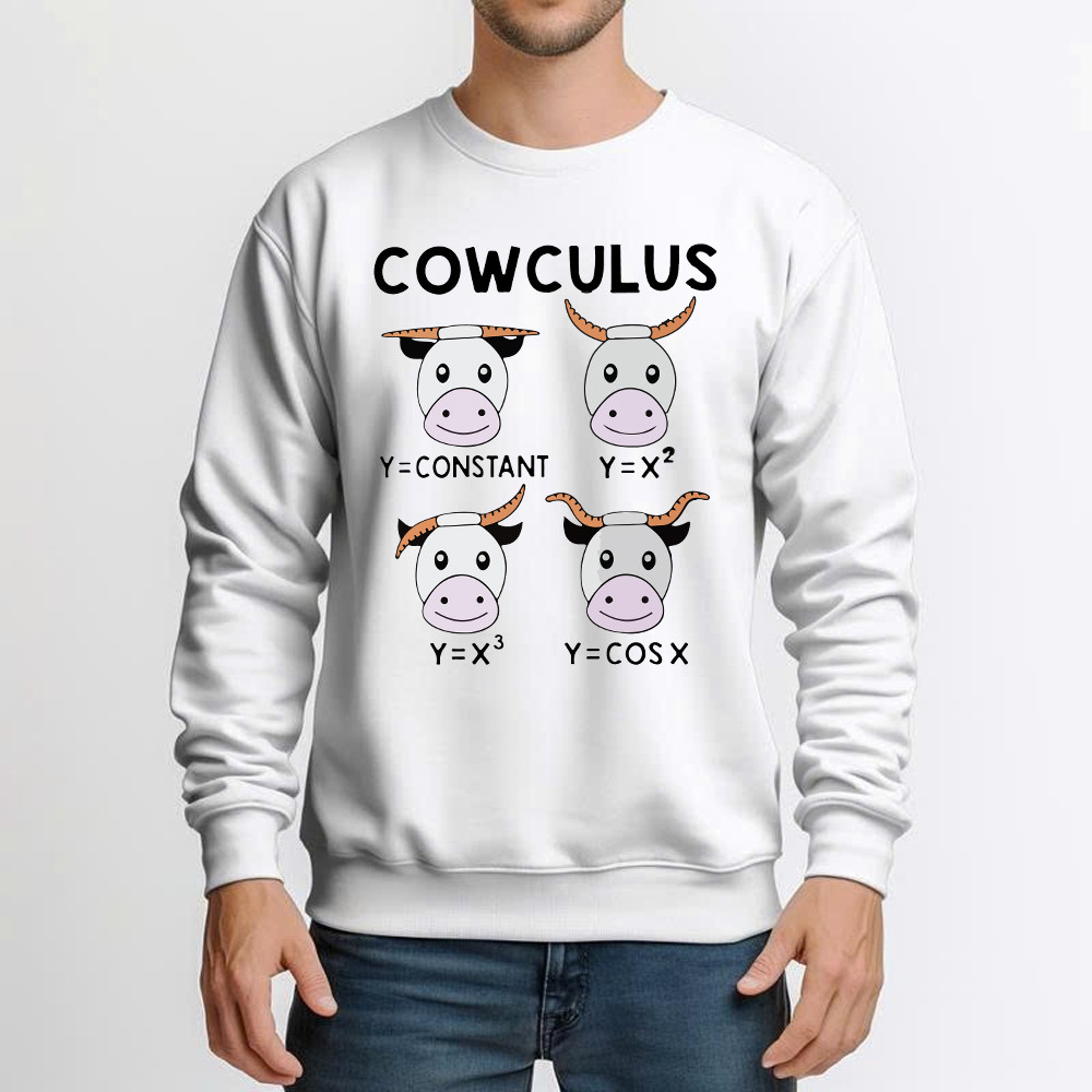 Cowculus Sweatshirt Funny Design Cow Learns Math Gift For Math Lovers. Sweatshirt product print in the USA. Exclusive products made by: Rivonaprint. 1×1 athletic rib cuffs and waistband with spandex; Double-needle stitching. 8 oz; 50% cotton/50% polyester. Decoration type: Digital Print. All products are made to order and proudly printed to the best standards available….