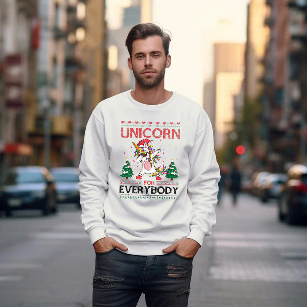 Dabbing Unicorn For Everybody Christmas Sweatshirt Fun Christmas Gift For Unicorn Lovers. Sweatshirt product print in the USA. Exclusive products made by: Rivonaprint. 1×1 athletic rib cuffs and waistband with spandex; Double-needle stitching. 8 oz; 50% cotton/50% polyester. Decoration type: Digital Print. All products are made to order and proudly printed to the best standards…