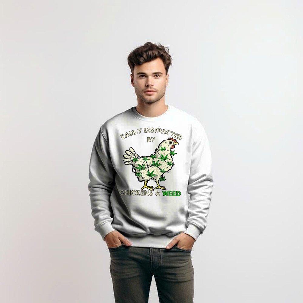 Easily Distracted By Chickens And Weed Sweatshirt Thanksgiving 2025. Sweatshirt product print in the USA. Exclusive products made by: Rivonaprint. 1×1 athletic rib cuffs and waistband with spandex; Double-needle stitching. 8 oz; 50% cotton/50% polyester. Decoration type: Digital Print. All products are made to order and proudly printed to the best standards available. They do…