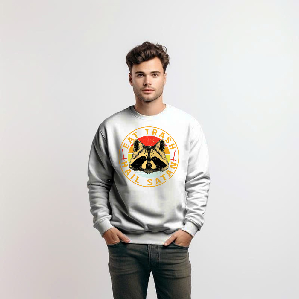Eat Trash Hail Satan Shirt Racoon Graphic Retro Sweatshirt Design Gift For Him. Sweatshirt product print in the USA. Exclusive products made by: Rivonaprint. 1×1 athletic rib cuffs and waistband with spandex; Double-needle stitching. 8 oz; 50% cotton/50% polyester. Decoration type: Digital Print. All products are made to order and proudly printed to the best…