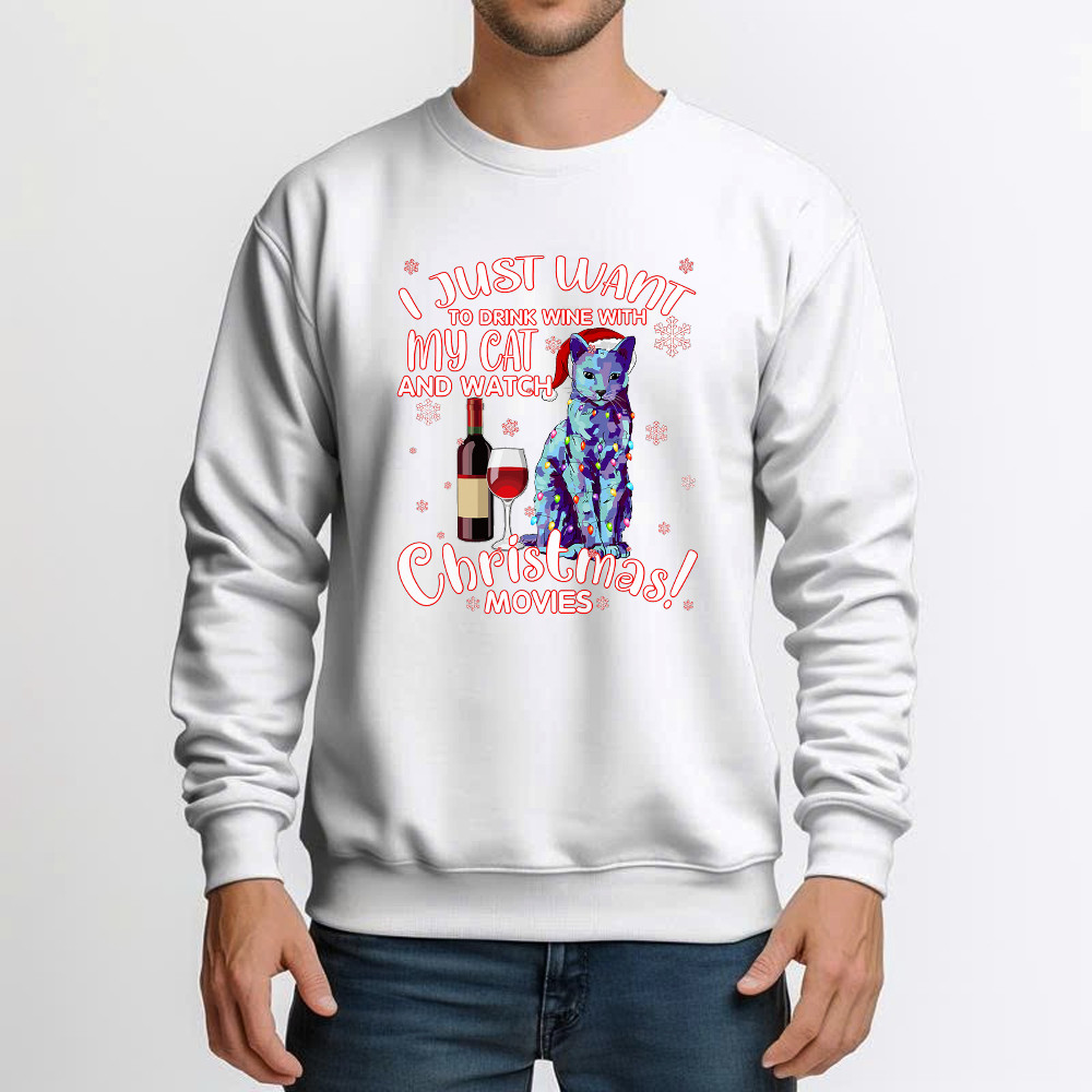 I Just Want To Drink Wine With My Cat Sweatshirt Wine Related Christmas Gift For Cat Lovers. Sweatshirt product print in the USA. Exclusive products made by: Rivonaprint. 1×1 athletic rib cuffs and waistband with spandex; Double-needle stitching. 8 oz; 50% cotton/50% polyester. Decoration type: Digital Print. All products are made to order and proudly…
