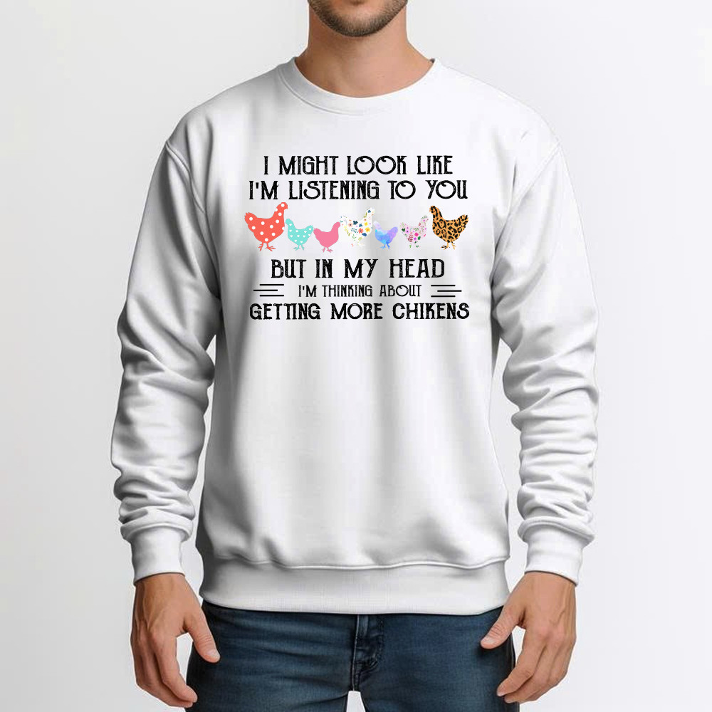 In My Head I m Thinking About Getting More Chickens Shirt Chicken Lovers Farmer Sweatshirt Gift. Sweatshirt product print in the USA. Exclusive products made by: Rivonaprint. 1×1 athletic rib cuffs and waistband with spandex; Double-needle stitching. 8 oz; 50% cotton/50% polyester. Decoration type: Digital Print. All products are made to order and proudly printed…