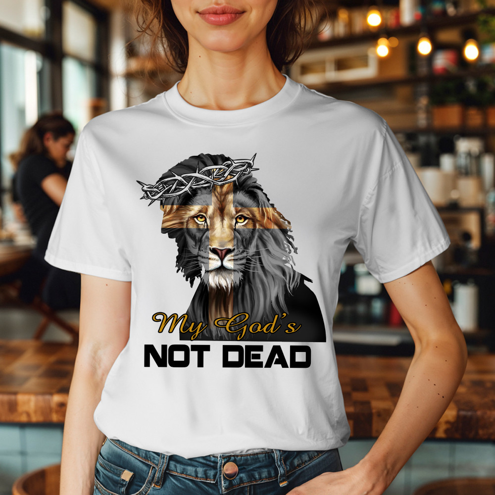 Lion Jesus My God’s Not Dead T-Shirt Faith Mens Christian Clothing Gifts For Him. T-Shirts printed in the USA Exclusive products made by: Rivonaprint. Material: 5.3-ounce, 100% cotton. Seamless double-needle 7/8. Taped neck and shoulders; Tearaway label. Decoration type: Digital Print. All products are made to order and proudly printed to the best standards available….