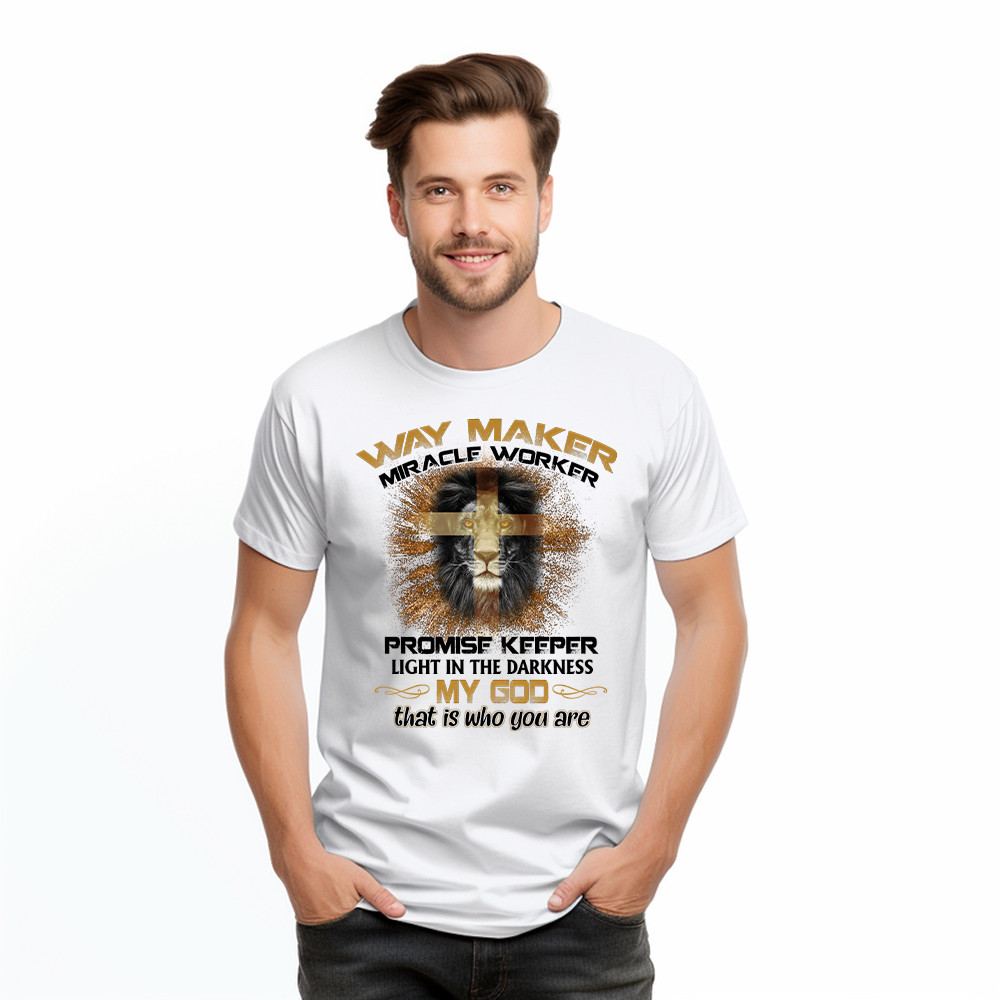 Lion Way Maker Miracle Worker Promise Keeper T Shirt Mens Christian Shirt Gifts For Men. T-Shirts printed in the USA Exclusive products made by: Rivonaprint. Material: 5.3-ounce, 100% cotton. Seamless double-needle 7/8. Taped neck and shoulders; Tearaway label. Decoration type: Digital Print. All products are made to order and proudly printed to the best standards…