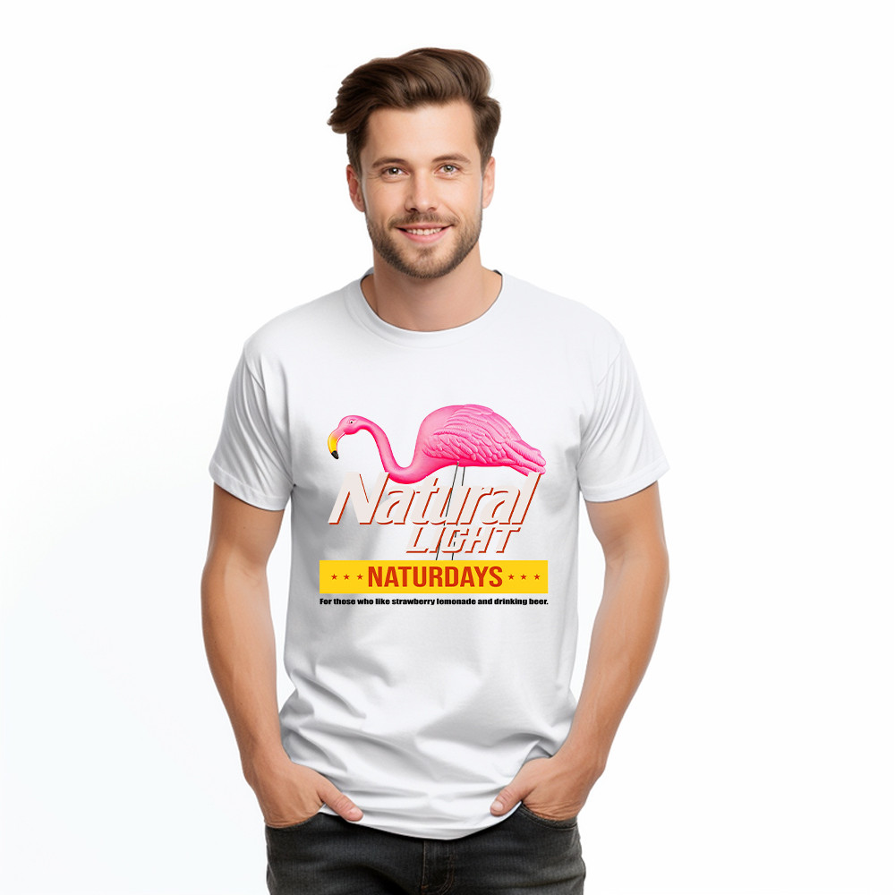 Pink Flamingo Natural Light Naturdays T-Shirt Funny Sayings Flamingo Shirt Mens Womens. T-Shirts printed in the USA Exclusive products made by: Rivonaprint. Material: 5.3-ounce, 100% cotton. Seamless double-needle 7/8. Taped neck and shoulders; Tearaway label. Decoration type: Digital Print. All products are made to order and proudly printed to the best standards available. They do…