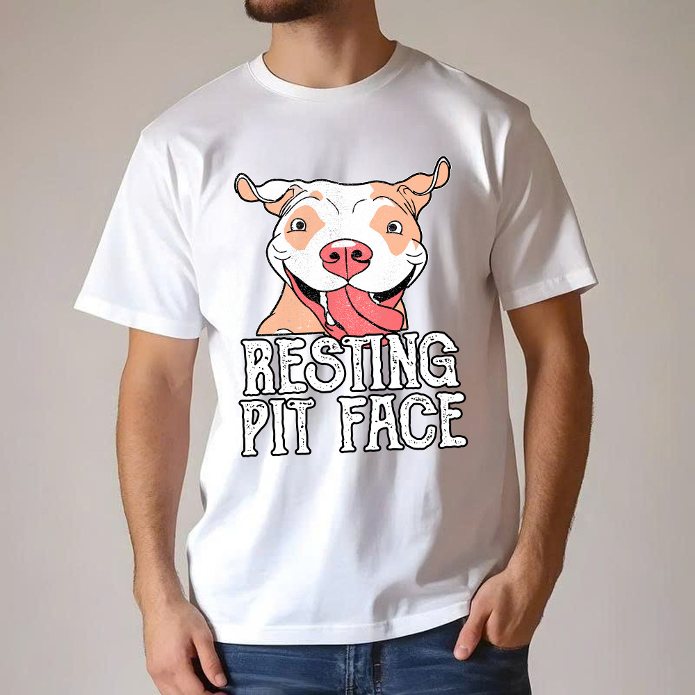 Resting Pit Face Shirt Funny Pitbull Graphic T-Shirt Gifts For Dog Owners. T-Shirts printed in the USA Exclusive products made by: Rivonaprint. Material: 5.3-ounce, 100% cotton. Seamless double-needle 7/8. Taped neck and shoulders; Tearaway label. Decoration type: Digital Print. All products are made to order and proudly printed to the best standards available. They do…