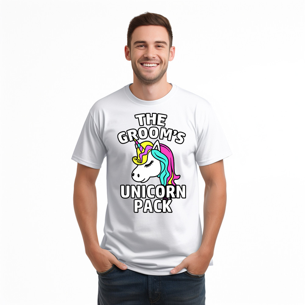 The Groom’s Unicorn Pack T Shirt Funny Groomsmen Shirts Gift For Friends. T-Shirts printed in the USA Exclusive products made by: Rivonaprint. Material: 5.3-ounce, 100% cotton. Seamless double-needle 7/8. Taped neck and shoulders; Tearaway label. Decoration type: Digital Print. All products are made to order and proudly printed to the best standards available. They do…