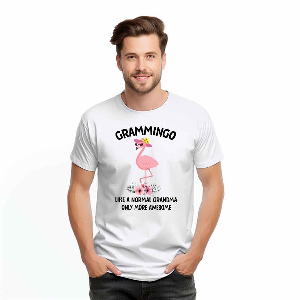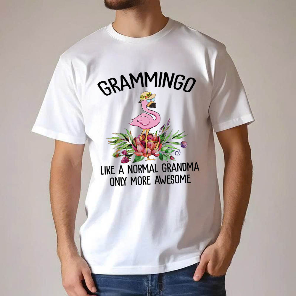 Grammingo Like Normal Grandma Only More Awesome T-Shirt Flamingo Woman Fun Tees Gifts For Grandma. T-Shirts printed in the USA Exclusive products made by: Rivonaprint. Material: 5.3-ounce, 100% cotton. Seamless double-needle 7/8. Taped neck and shoulders; Tearaway label. Decoration type: Digital Print. All products are made to order and proudly printed to the best standards…
