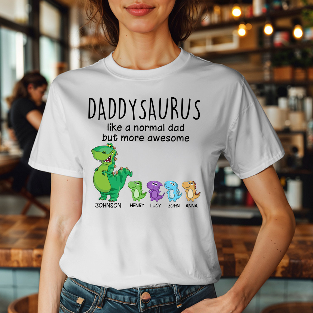 Grandpasaurus Like A Normal Dad But More Awesome Shirt Cute Dinosaurs Graphic T-Shirt Daddy Gift. T-Shirts printed in the USA Exclusive products made by: Rivonaprint. Material: 5.3-ounce, 100% cotton. Seamless double-needle 7/8. Taped neck and shoulders; Tearaway label. Decoration type: Digital Print. All products are made to order and proudly printed to the best standards…