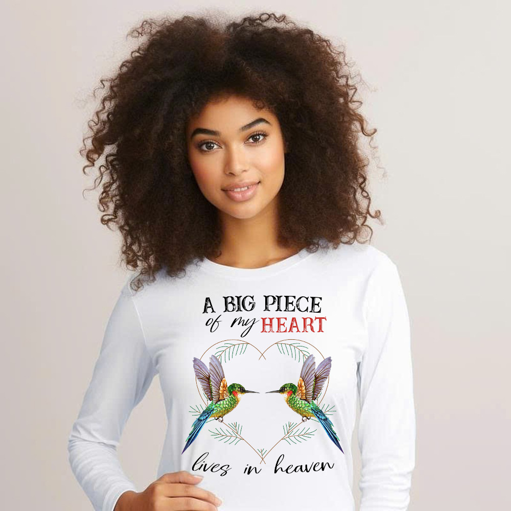 A Big Piece Of My Heart Lives In Heaven Shirt Bird Couple Memorial Day Long Sleeve Shirt Gift.