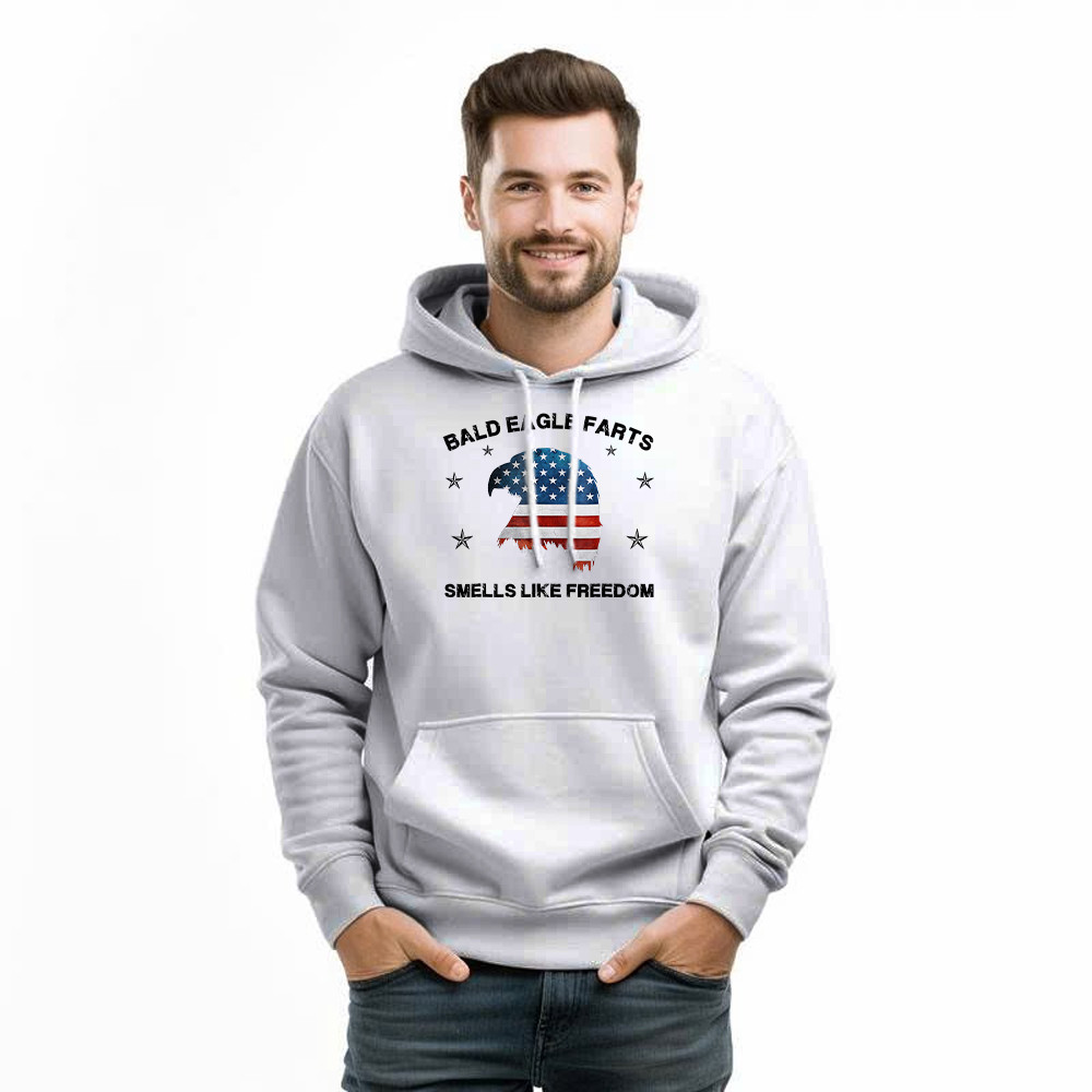 Bald Eagle Farts Smells Like Freedom Hoodie Patriotic Themed Clothing Mens.