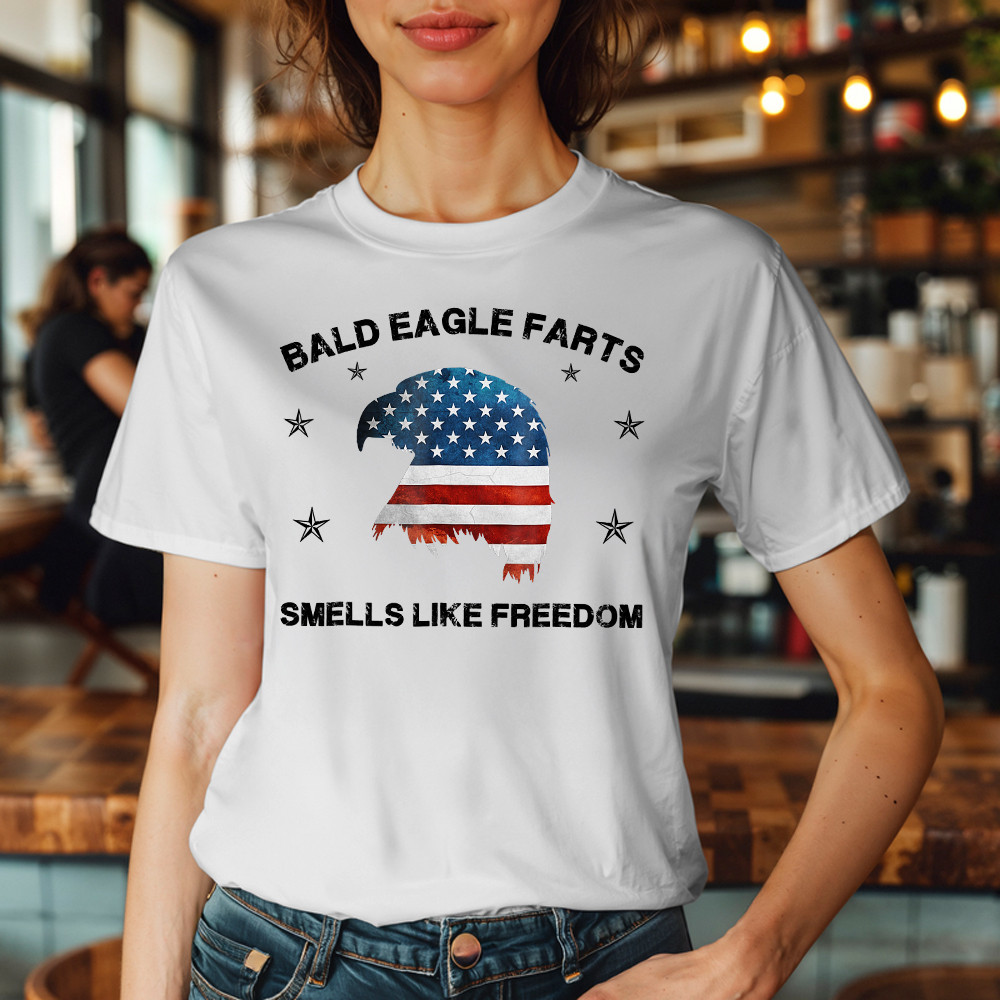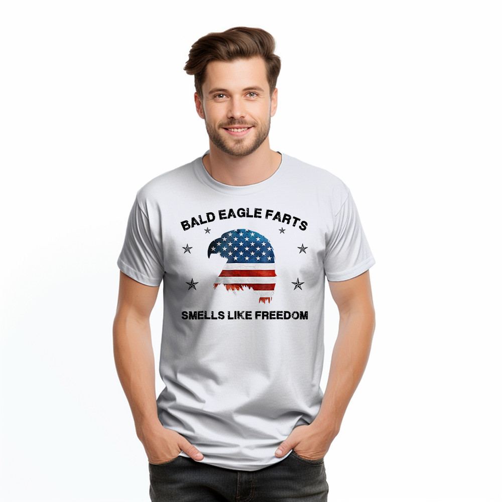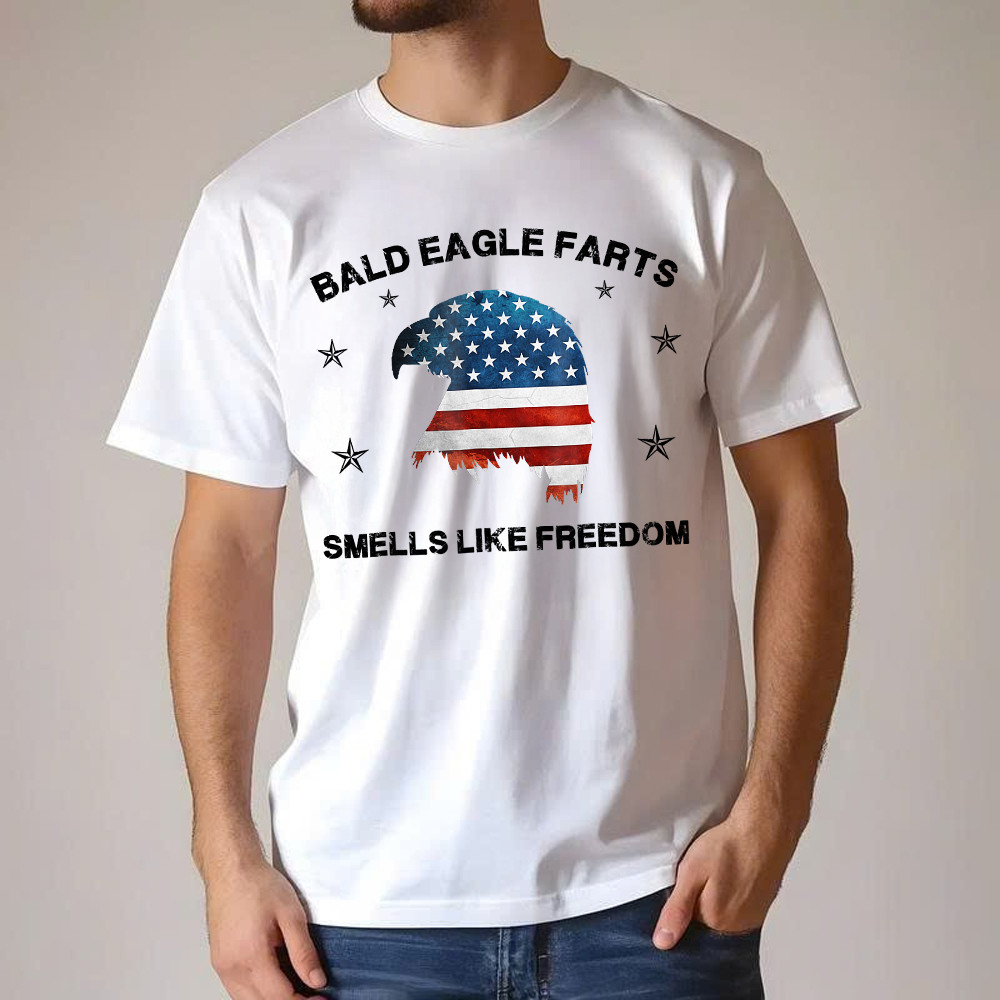 Bald Eagle Farts Smells Like Freedom T-Shirt Patriotic Themed Clothing Mens.