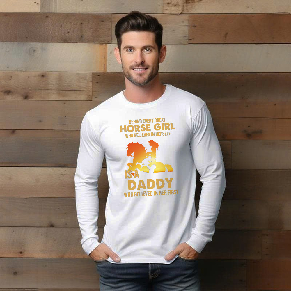 Behind Every Great Horse Girl Who Believes In Herself Is A Daddy Long Sleeve Shirt Fathers Day Presents.