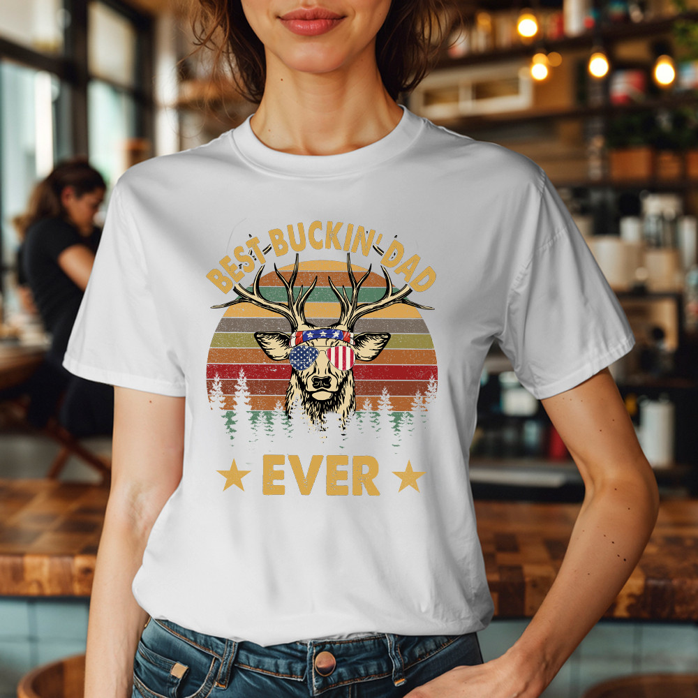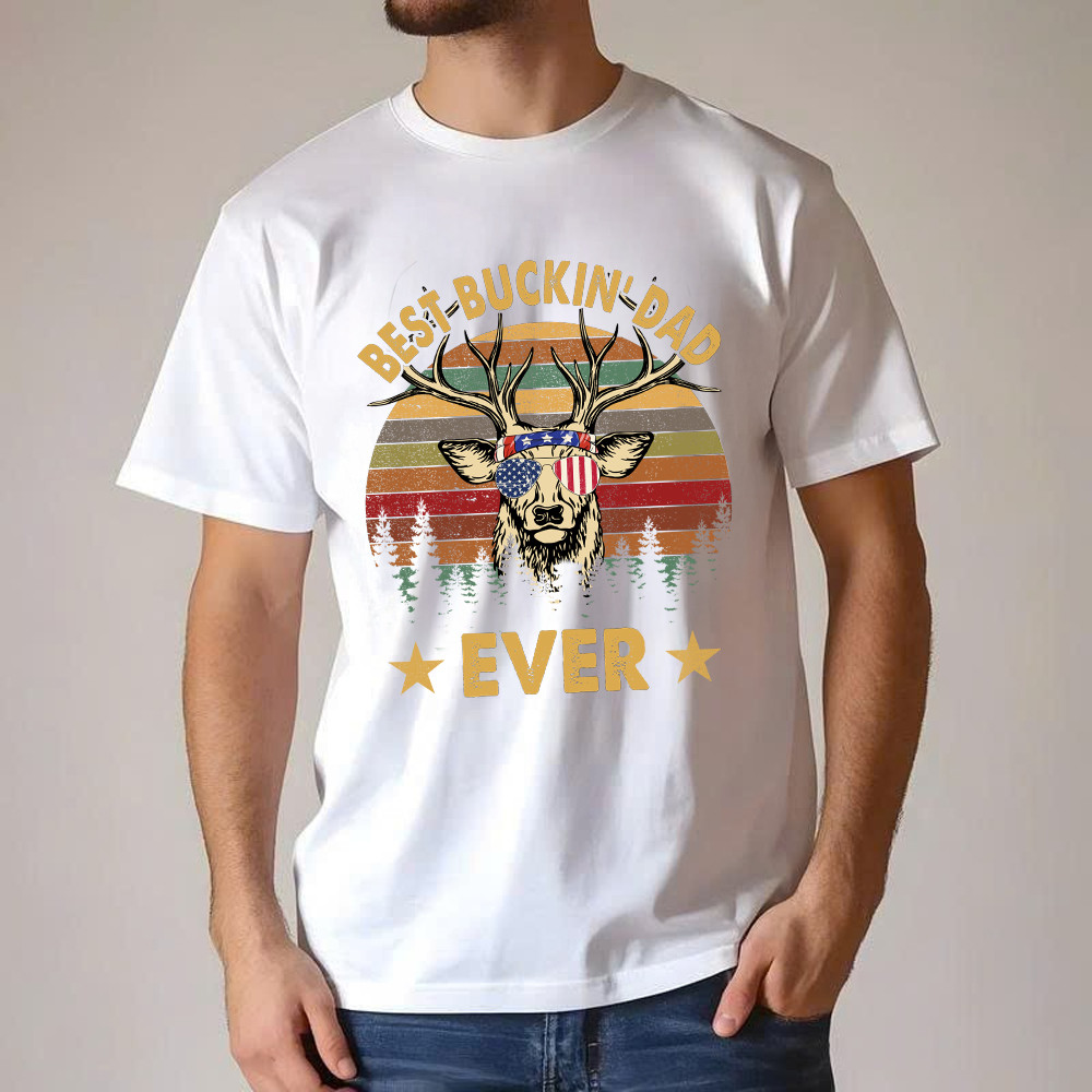 Best Buckin Dad Ever T-Shirt Deer Hunter Vintage Tees Dads Fathers Day Gifts Rivonaprint