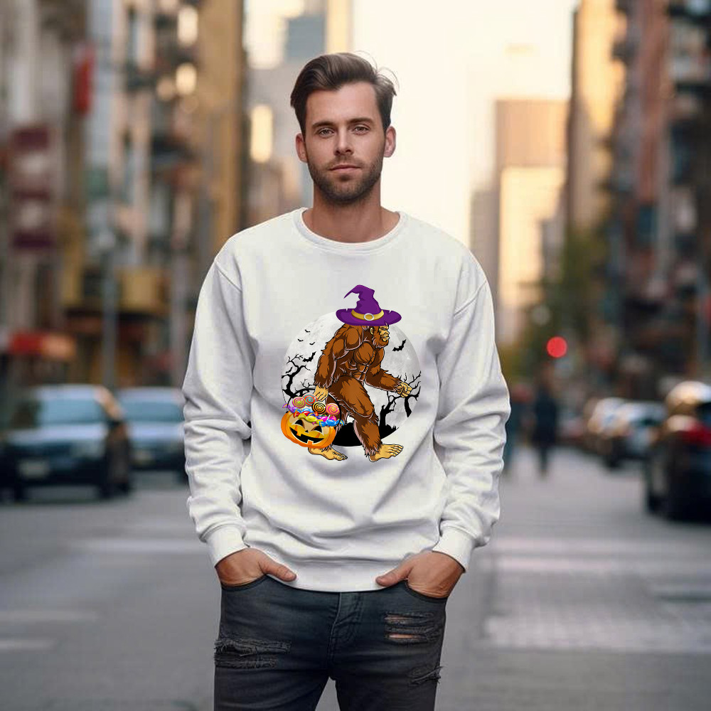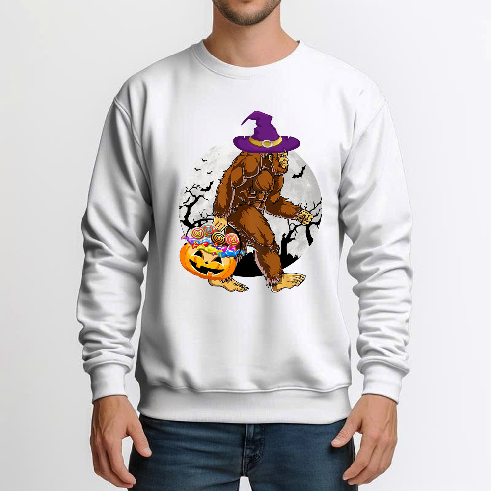 Bigfoot With Moon Halloween Shirt Funny Animal Holiday Sweatshirt Halloween Gift.