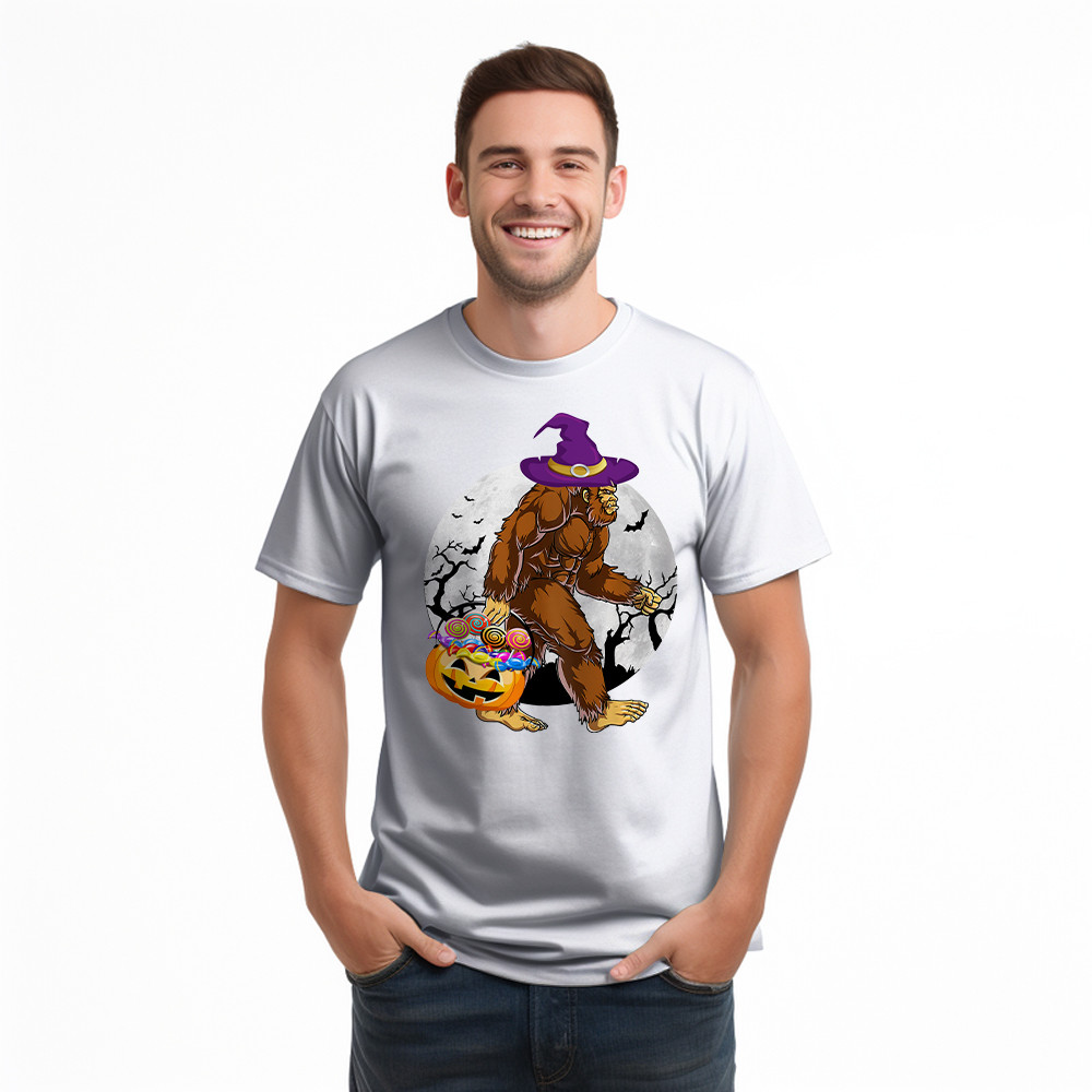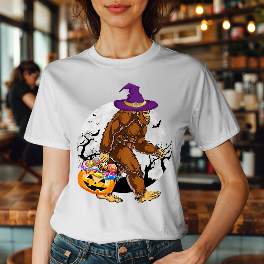 Bigfoot With Moon Halloween Shirt Funny Animal Holiday T-Shirt Halloween Gift.