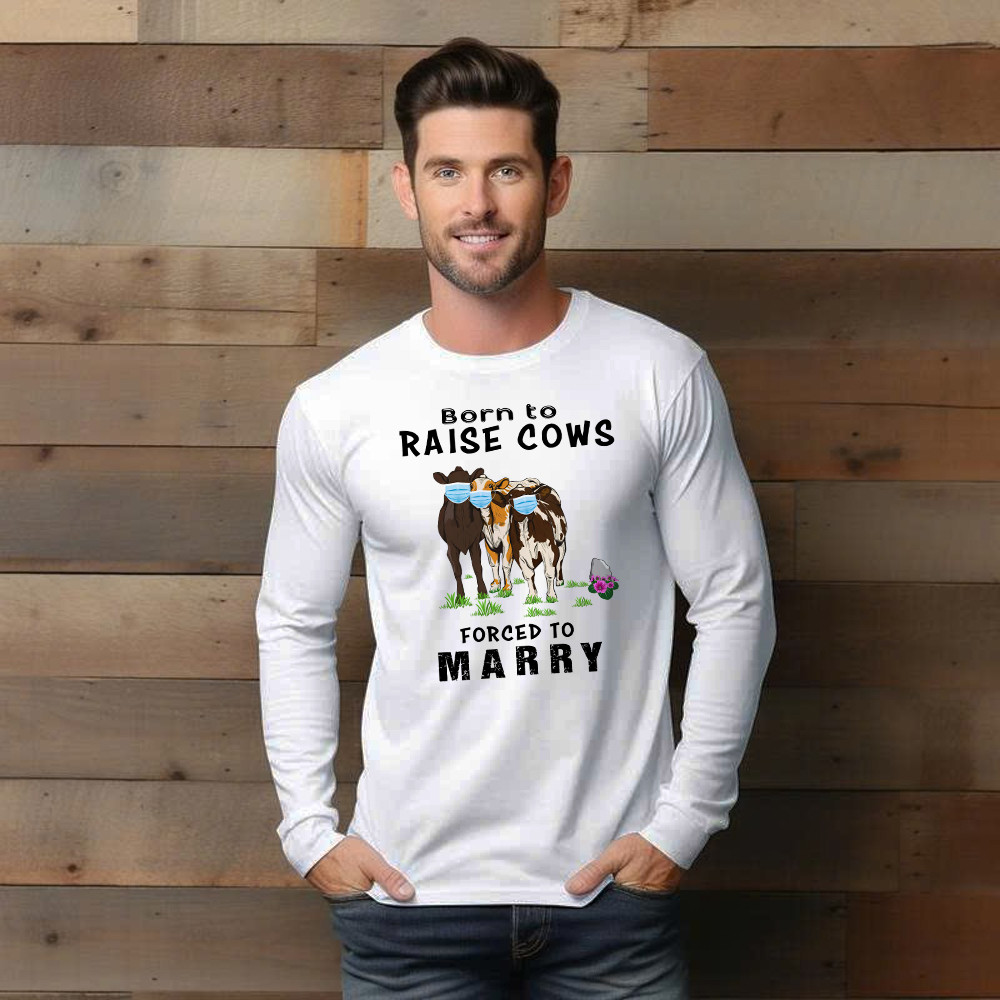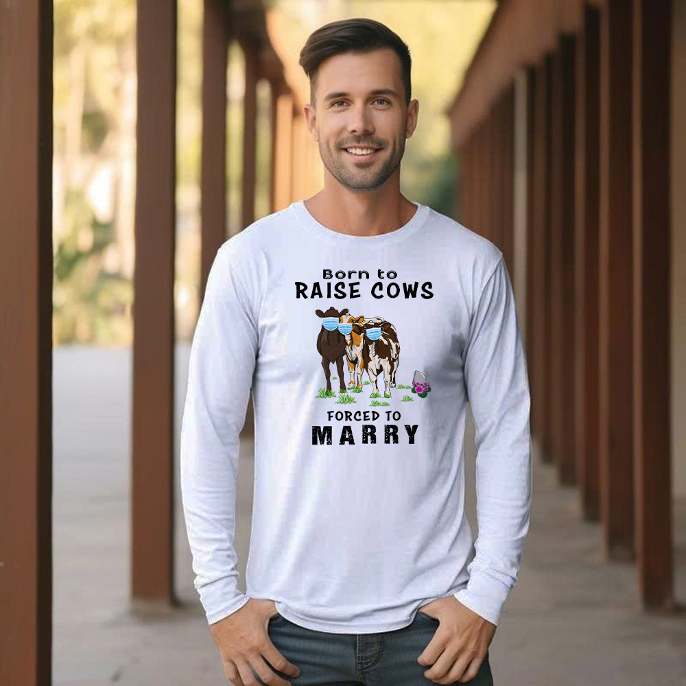 Born To Raise Cows Forced To Marry Long Sleeve Shirt Funny Sayings Gifts For Cow Raisers Farmers Rivonaprint
