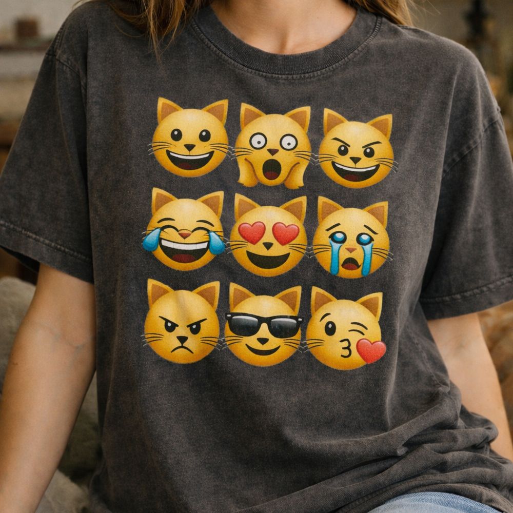 Cat emoji collage on vintage T-shirt