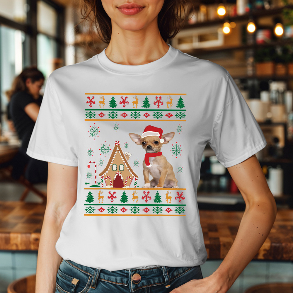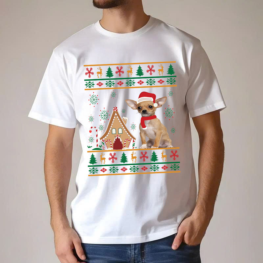 Chihuahua Santa Ugly Christmas Sweater T-Shirt Cute Christmas Shirts Dog Lovers Gift.