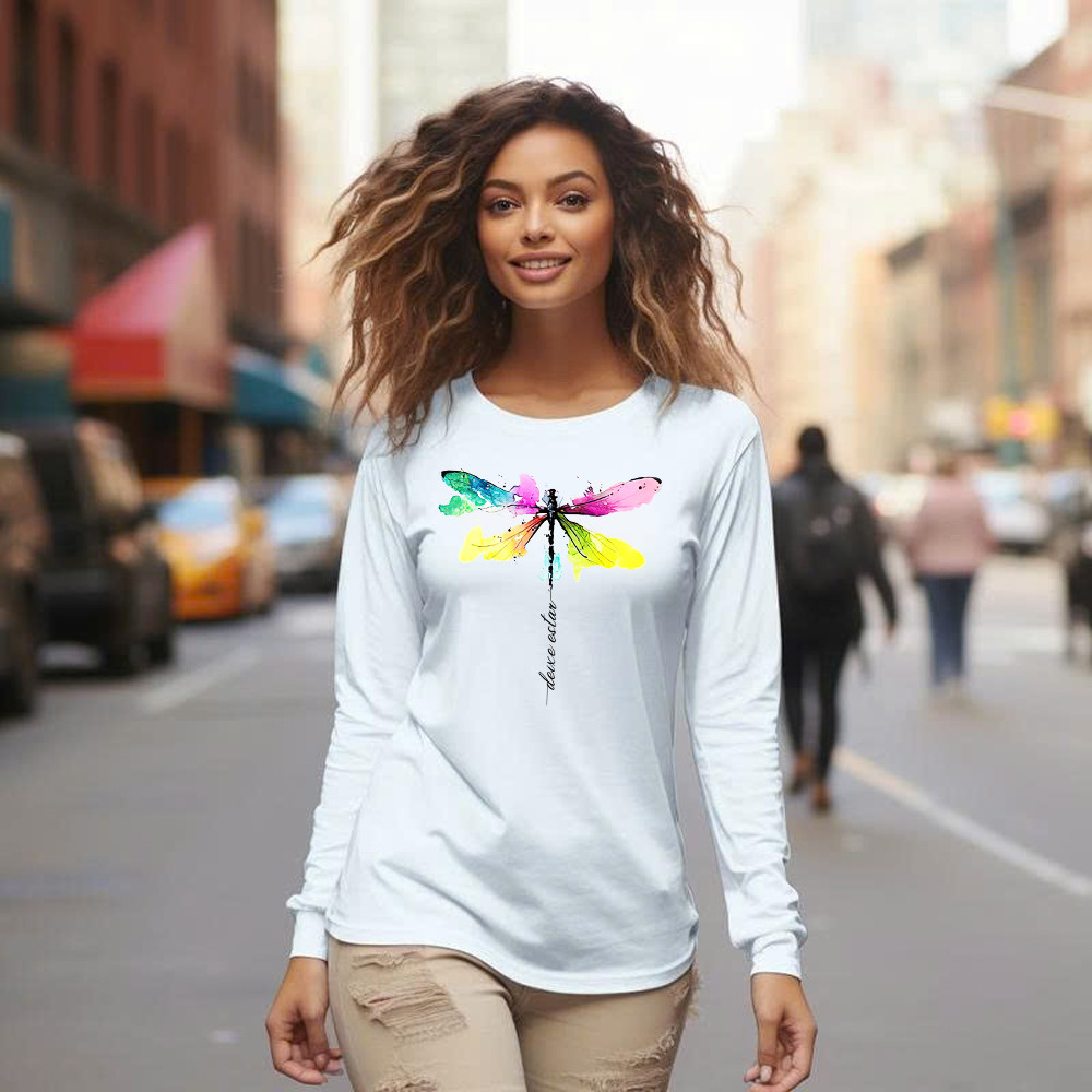 Deixe Estar Colorful Dragonfly Shirt Music Themed Animal Long Sleeve Shirt Gift For Teens.