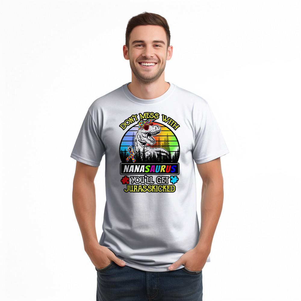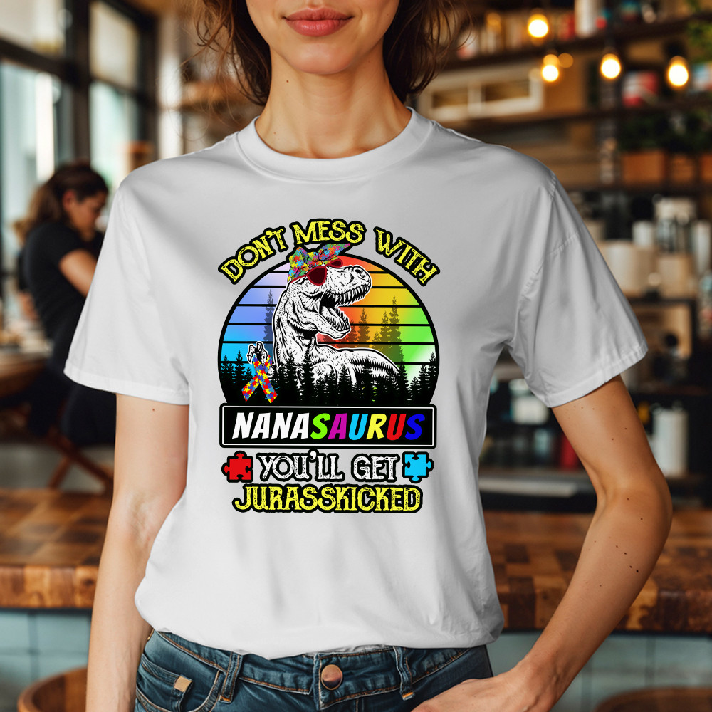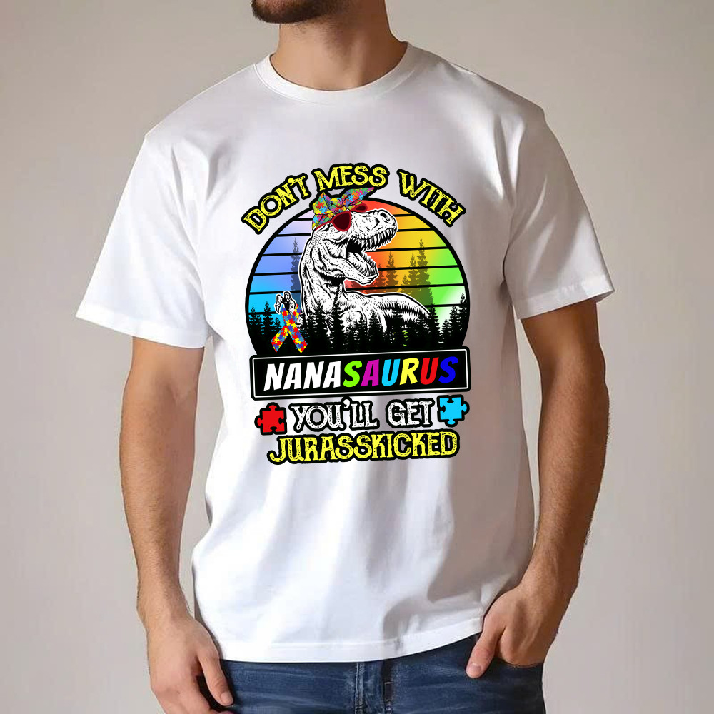 Don’t Mess With Nanasaurus T-Shirt Dinosaur Graphic Autism Awareness Shirts Gifts For Grandma Rivonaprint
