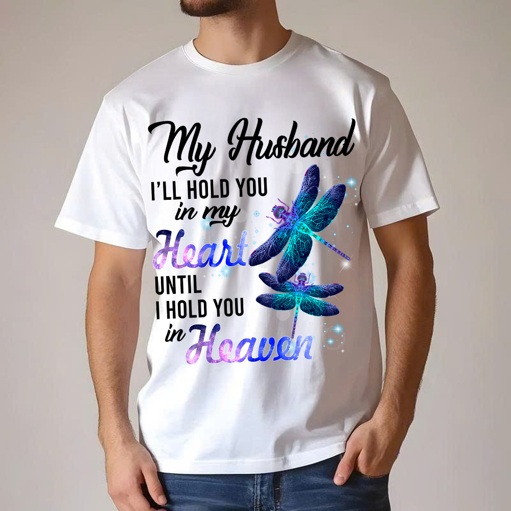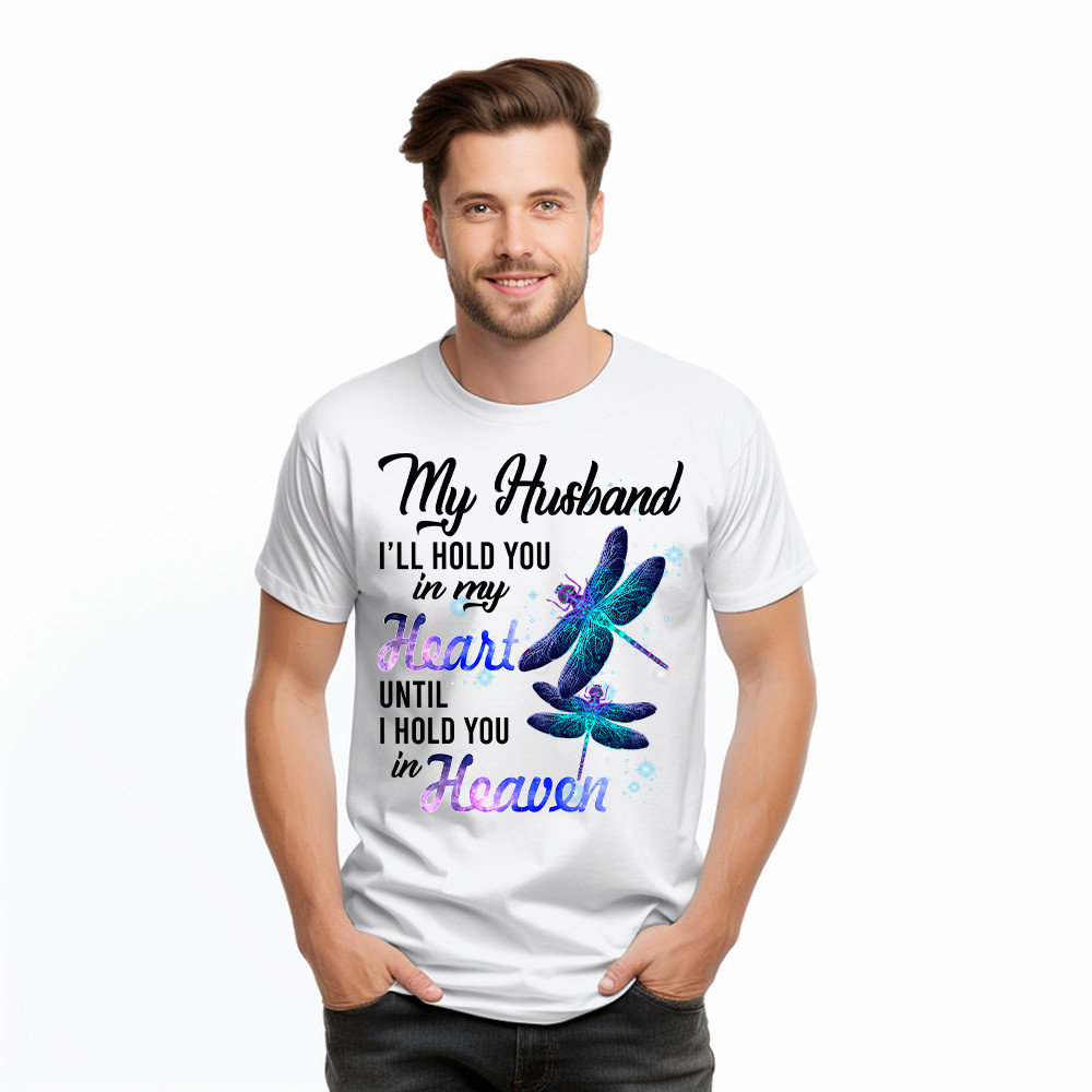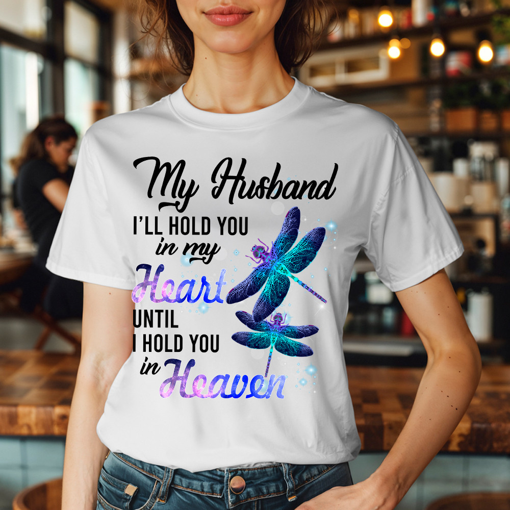 Dragonfly I Will Hold You In My Heart In Heaven T-Shirt Sympathy Gifts For Loss Of Husband.