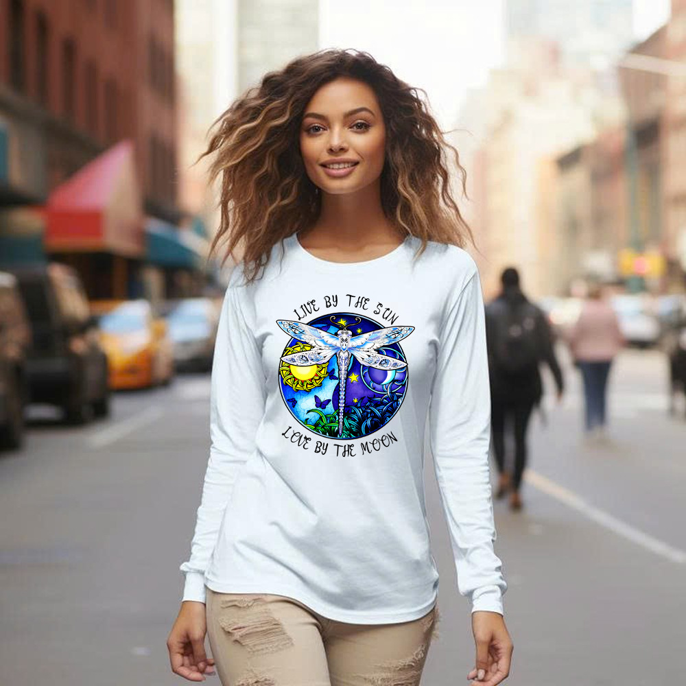 Dragonfly Live By The Sun Love By The Moon Shirt With Sayings Dragonfly Long Sleeve Shirt Women Rivonaprint