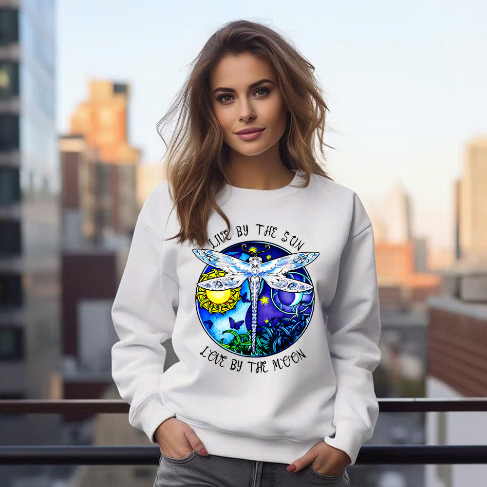 Dragonfly Live By The Sun Love By The Moon Shirt With Sayings Dragonfly Sweatshirt Women Rivonaprint
