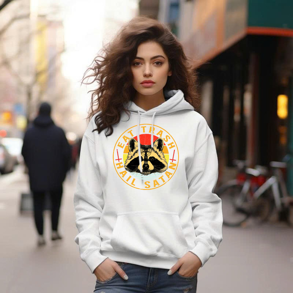 Eat Trash Hail Satan Shirt Racoon Graphic Retro Hoodie Design Gift For Him.
