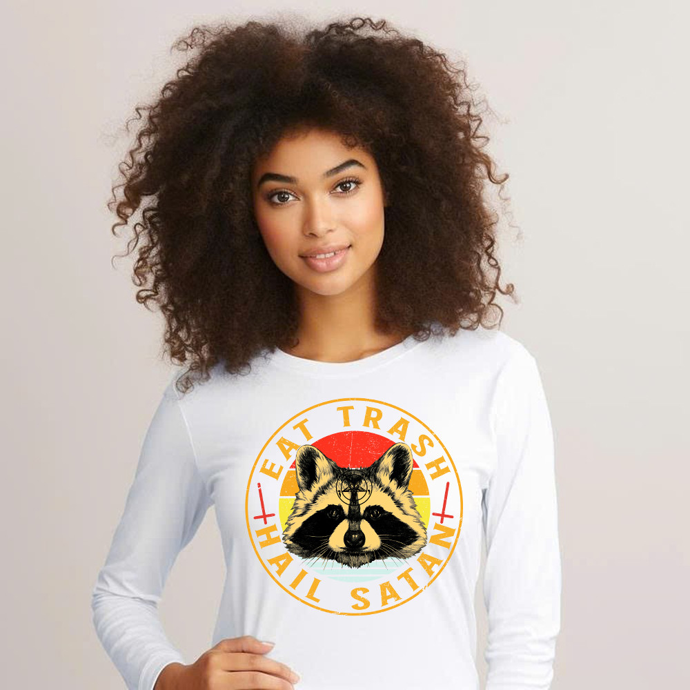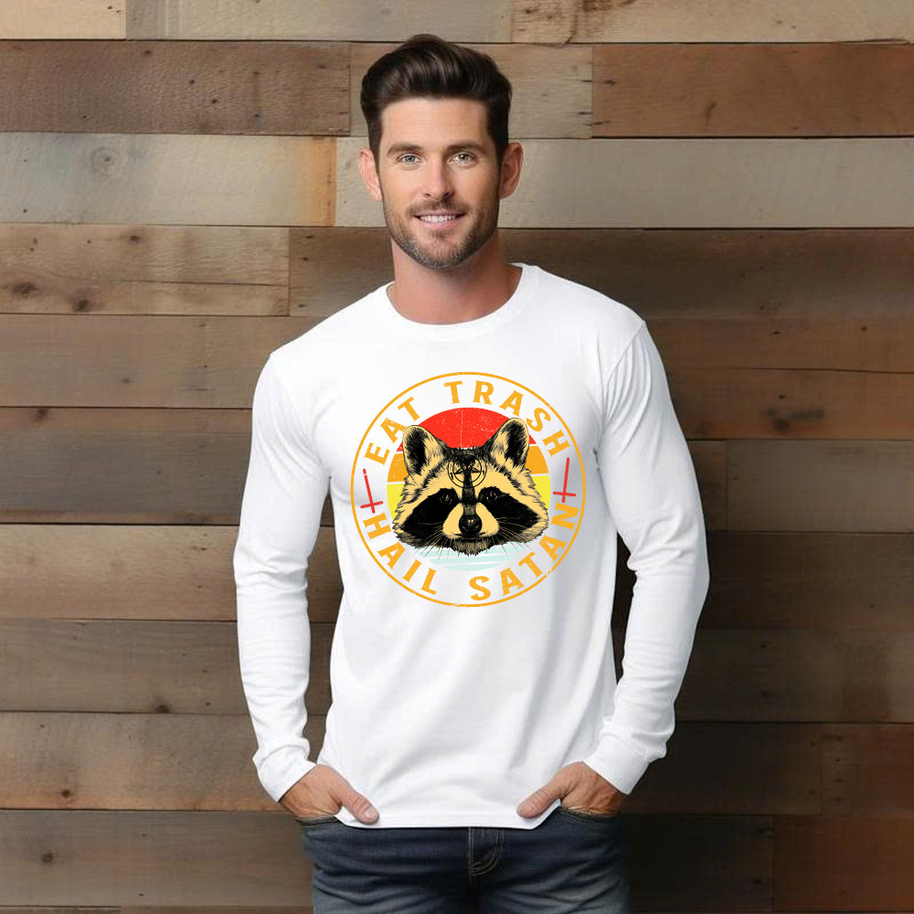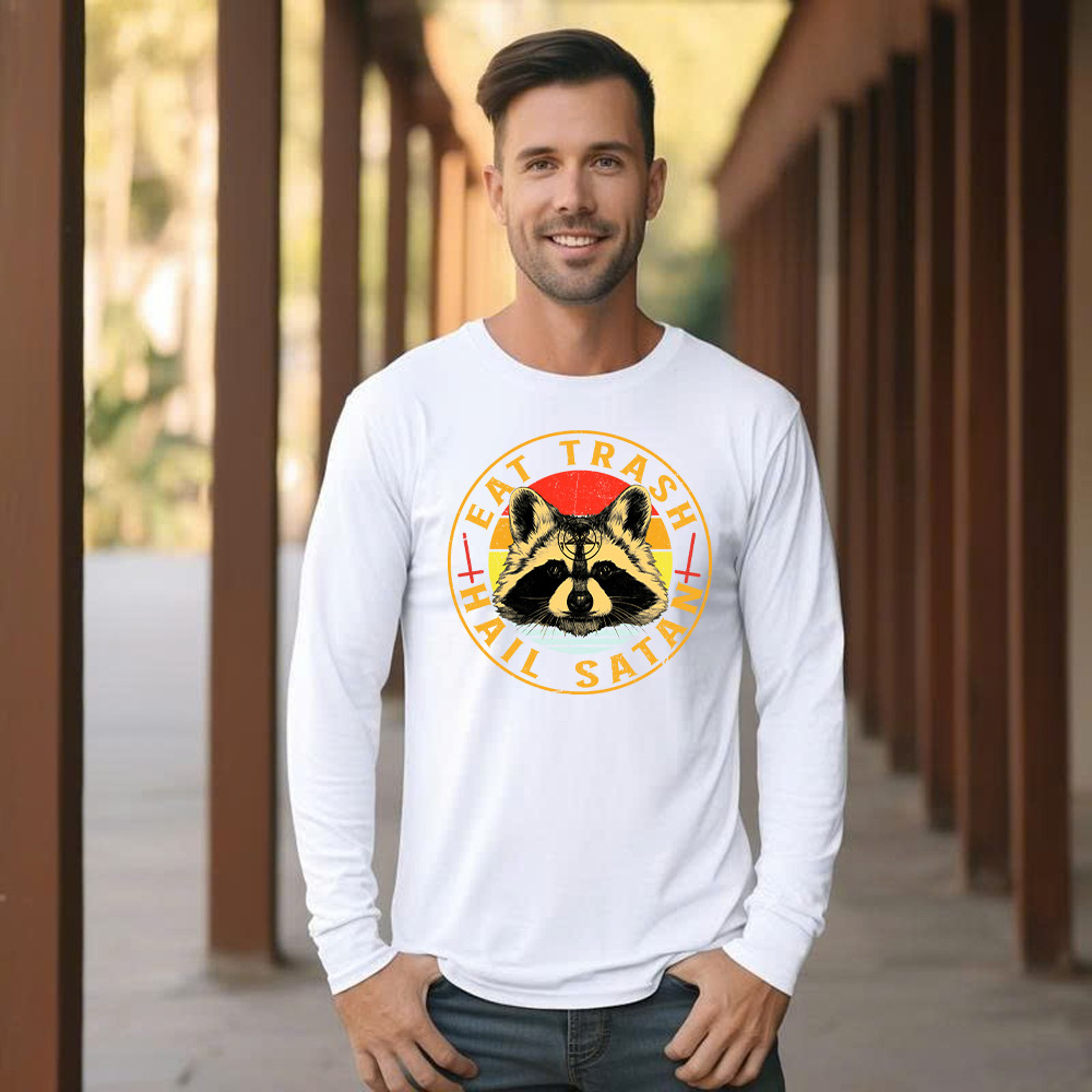 Eat Trash Hail Satan Shirt Racoon Graphic Retro Long Sleeve Shirt Design Gift For Him.